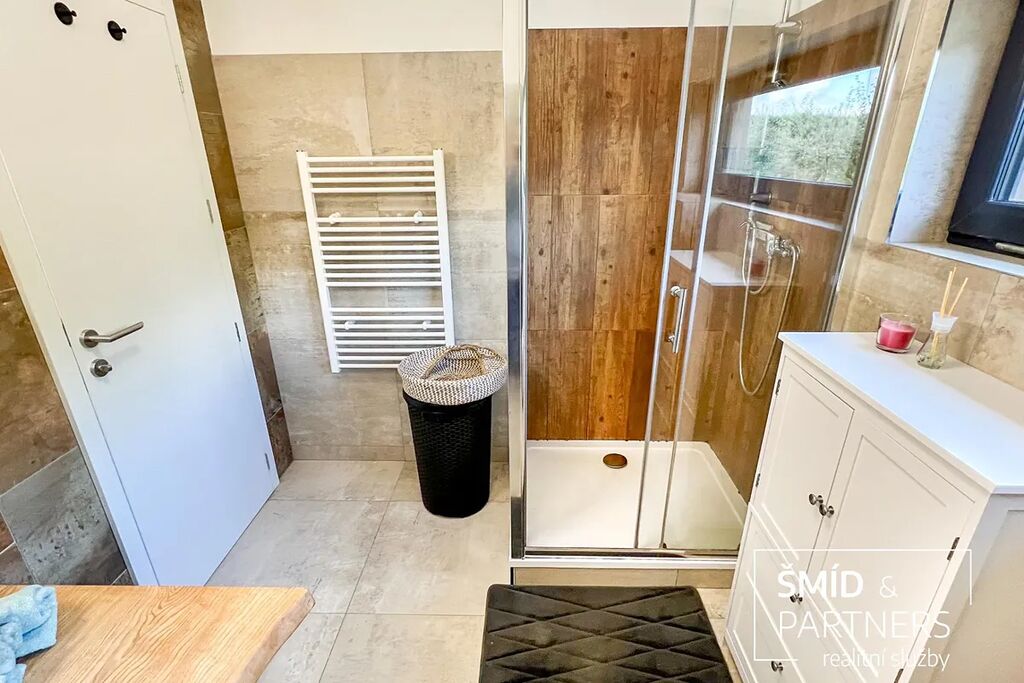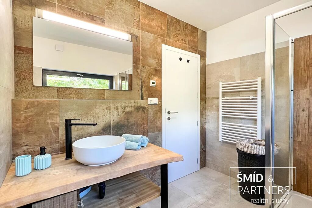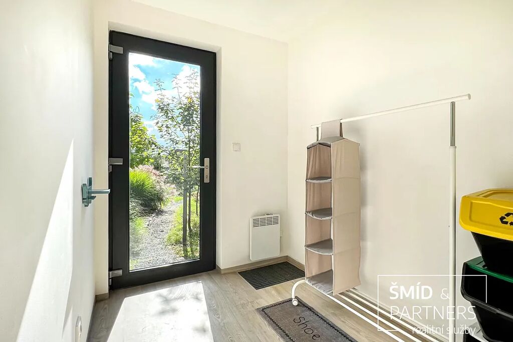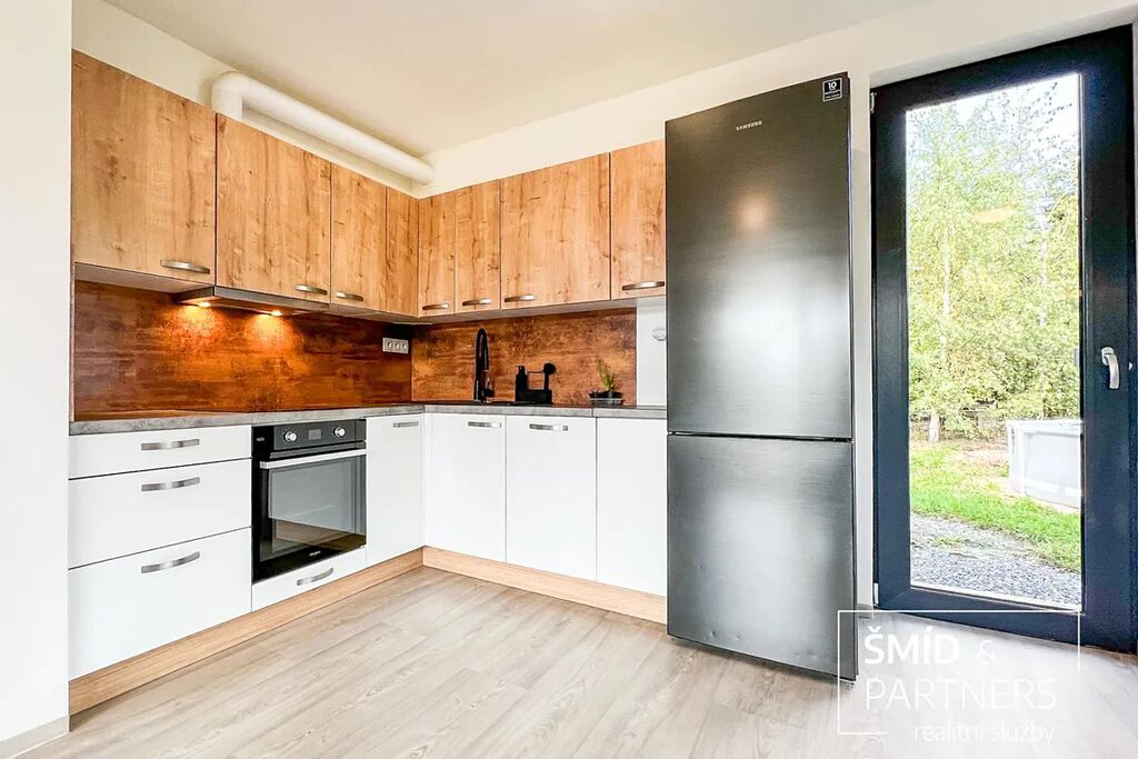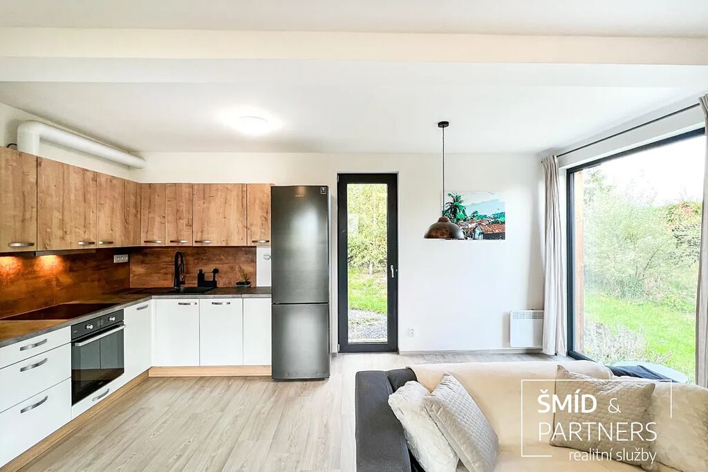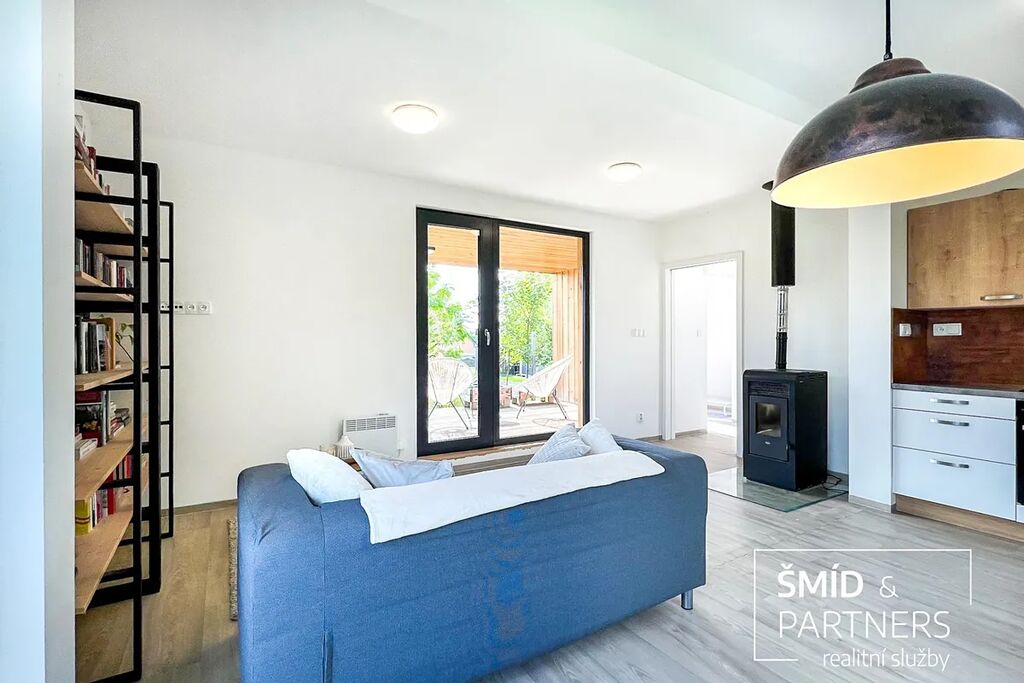 Naše kancelář zprostředkovává prodej velice atraktivního, moderního a ekologického domu v krásné oblasti Posázaví. Tento dům, postavený firmou Blokki specializující se na modulové a modulární stavby domů upcyklací lodních kontejnerů, se nachází v obci Užice - Čekánov v blízkém sousedství města Sázava. Čekánov je skvělé místo pro trávení aktivního života, k čemuž inspiruje okolní příroda s ikonickou řekou Sázavou, rozlehlými lesy a místy nabízejícími mnoho outdoorových aktivit. Pokud hledáte jen klidné útočiště, pak Vám rozlehlá, více než patnáct set metrů velká, zahrada obklopující dům nabídne notnou dávku soukromí a klidu. Zahrada je svou vlastní kapitolou. Je, jak již bylo zmíněno, opravdu prostorově bohatě dimenzovaná a pečlivě vybudovaná jako permakulturní na základě principů přírodních zahrad. Tento koncept zahrad využívá trvale udržitelný a samostatně se obnovující systém bez zásahů, jako jsou např. postřiky proti škůdcům nebo ruční plení. Přestože permakulturní zahrady jsou převážně užitkové, dokáží plnit i funkci okrasnou, čehož je tato zahrada jasným důkazem. Nespornou výhodou je její menší náročnost na údržbu a zálivku, velká druhová rozmanitost s velkým podílem rostlin, které dokáží majitele téměř celoročně zásobit výpěstky. Na zahradě se kromě skleníku, vyvýšených záhonů a plochy pro dětské hraní nachází také velmi praktická stavba dílny (ateliéru), která může sloužit skvěle i jako samostatná pracovna či případně domek pro hosty. Je zde zavedena elektřina a taktéž voda. K ukládání zahradního, sportovního či jiného vybavení jsou k dispozici další dva montované zahradní domky.