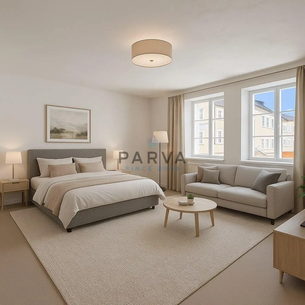 Dispozice bytu je navržena s důrazem na praktičnost a komfort. Dominantou je prostorný obývací pokoj s kuchyňským koutem, na který navazují dva samostatné pokoje. Součástí je velkorysá koupelna s toaletou a velká šatna s dostatkem úložného prostoru. K jednotce náleží také sklepní kóje umístěná v bývalé hospodářské budově ve dvoře domu.