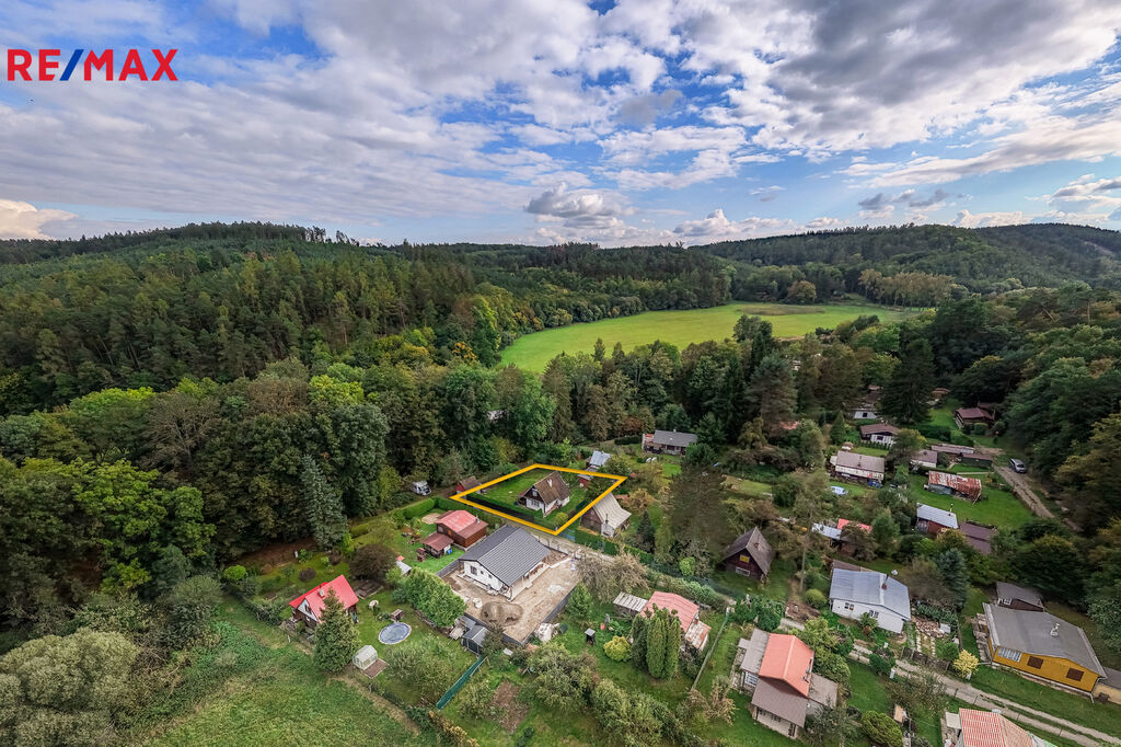 Chata s podkrovím, má zastavěnou plochu 37 m2 a užitnou plochu cca 55 m2.