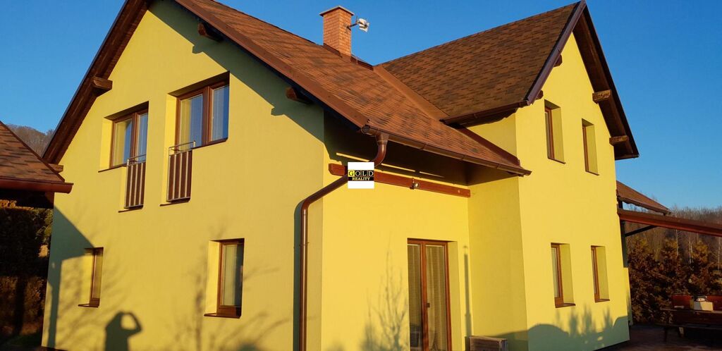 Exkluzivní prodej krásného, světlého a prostorného domu 5+kk s terasou, v obci Cidlina. Novostavba, kolaudace 2019. V přízemí: obývací pokoj, kuchyň s jídelnou, ložnice, koupelna (9 m2), chodba, komora a wc. V patře tři ložnice a koupelna s toaletou (10 m2). Kuchyňská linka s elektrickou varnou deskou, elektrickou troubou, lednicí s mrazničkou, myčkou a pracovní deskou z masivu. Koupelna v přízemí s vířivou vanou. Koupelna v patře se sprchovým koutem. Kvalitní okna na východ, jih a západ, bezpečnostní čtyřskla s konexem. Vstupní dveře také bezpečnostní. Interiérové dveře, z masivu, od truhláře. Na podlahách pvc, dlažby, koberce. Obývací pokoj s kuchyní a s jídelnou (49 m2). Vytápění ústřední, elektrickým kotlem + krbová vložka v obývacím pokoji. Ohřev vody boilerem. Terasa (100 m2), s krytým bazénem (18 m2) s ohřevem vody solárním panelem. Zateplená fasáda domu. Garáž + přístřešek na parkování. Vrata u plotu elektrická s dálkovým ovládáním. Dvě stání na přívěsný vozík, pod podlahou terasy, popřípadě úložný prostor. Přístřešek na dřevo, na nářadí a na filtraci bazénu. Septik s biofiltrem. Kopaná studna 13 metrů, s dostatkem vody. Na zahradě vzrostle, ovocné stromy a tůje kolem plotu, jež zajištují soukromí na terase i na zahradě. Škola, pošta, potraviny, restaurace v obci Železnice (4 km). Školka v obci Kněžnice (3 km). Autobus do Lomnice nad Popelkou, do Železnice a do Jičína. Možno financovat hypotečním úvěrem !