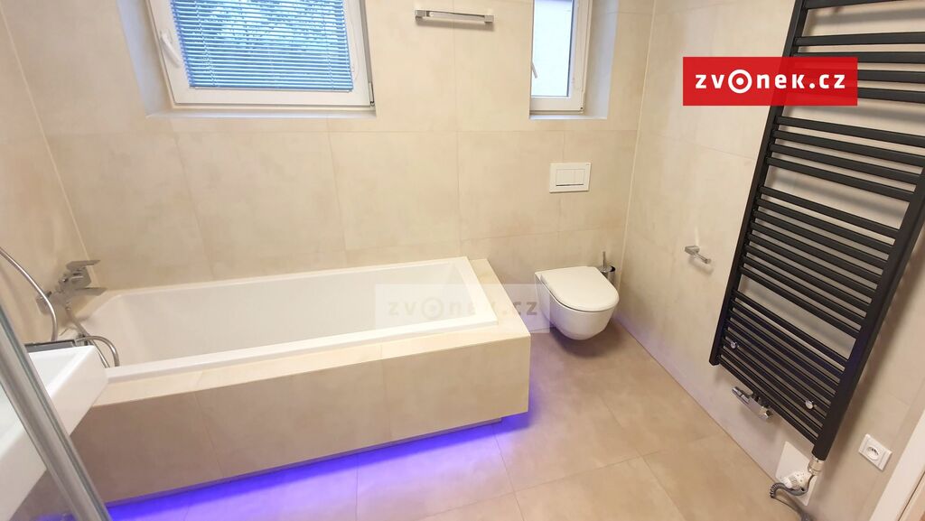 Nabízíme pronájem nově zrekonstruované části domu - bytu 2+1 v Kostelci. Jedná se o samostatnou bytovou jednotku v rodinném domě (celkem pouze 2 byty) včetně zahrady, krytého parkovacího stání a posezení pod pergolou. Byt se nachází v horním patře. Byt je koncipován jako 2+1, plocha 75 m2 + 20 m2 sklep + chodba. Byt je vybaven kuchyní, stolem a židlemi, postelí (na přání), roletami a žaluziemi v oknech, sítěmi proti hmyzu ve ventilačních oknech. K bytu patří sklep 25 m2 ve kterém se nachází nářadí na údržbu domu a zahrady včetně sekačky a dílenský ponk s vybavením. K dispozici je také velký mrazák, možnost dovybavení pračkou. Ve sklepě je také samostatný plynový kotel, samostatný plynový bojler 155 l pro byt. Byt je dále vybaven kvalitními německými radiátory Kermi. V koupelně je pak podlahové topení + otopný žebřík. Dálková regulace topení je nainstalována v obývacím pokoji. Dům má pro oba byty společný hlavní vchod a chodbu. Podrobný popis: obývací pokoj je volnoprostorově propojen s kuchyní a jídelnou. Je vybaven velkým kruhovým Led světlem s dálkovým ovládáním a regulací barev a svitu. Podlaha je z příjemného vinylu s dekorem dřeva. Ložnice je oddělena od obývacího pokoje příčkou s protihlukovou výplní a je propojena s obývacím pokojem dveřmi s protihlukovou ochranou. Na přání může být vybavena italskou stylovou postelí z masivu a matracemi o velikosti 220 x 160 cm. Koupelna je vybavena podlahovým topením s přímou regulací, bezrámovým moderním sprch. koutem Kermi, vanou podsvícenou Led páskem, zrcadlem s led 3D efektem, kosmetickým zrcadlem, otopným žebříkem, toaletou Laufen Pro rimless, moderním keramickým umyvadlem Cube, vše vybaveno moderními Cube bateriemi, velkým Led kruhovým světlem se stmívačem. Šatna: přípojka na pračku, osvětlení Led. Kuchyně Sykora: je vybavena lednicí, el. troubou a sklokeramickou deskou, rohovým dřezem, digestoří, bodovým osvětlením, kuchyňská linka je rohová, prostorná a poskytuje hodně úložných prostor. Zahrada a parkování: zahrada je vysázená květinami a jehličnany + travnatá plocha pro sportovní aktivity. Pro vjezd ke krytému parkování obdrží nájemník dálkový ovladač od el. brány. Kryté parkování je pro jeden vůz pro každý byt. Posezení pod pergolou je až pro 10 osob. Infrastruktura v blízkosti domu: MHD 100m, Restaurace 70m, školka 60m, škola 250m, dětské hřiště 120m, extra parkování 120m a druhé 80m, cyklostezka 200m, Zoo Lešná 800m. Obvodní lékař 60m. Kostel 200m. Čtvrtletní platba nájemného. Provize RK ve výši měsíčního nájmu vč. energií. Byt je ihned k nastěhování.