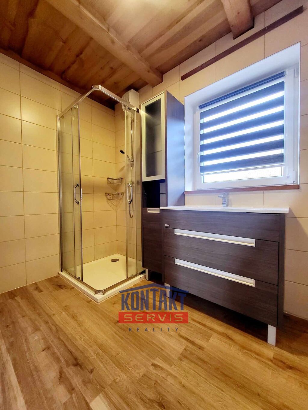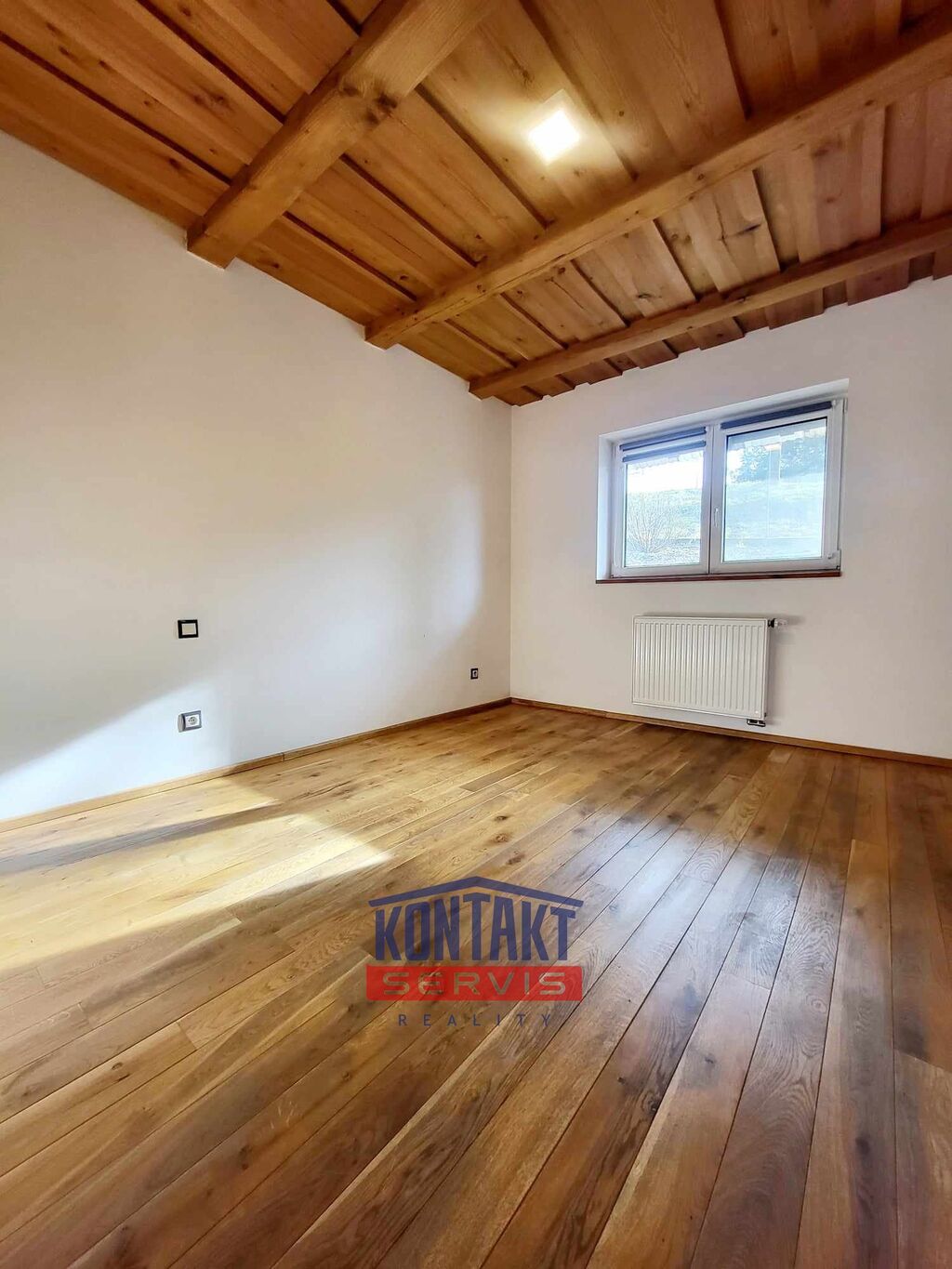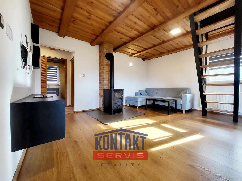 Centrální místností je pak prostorný, prosvětlený obývací pokoj s krbovými kamny, který je propojený s vybavenou kuchyní (včetně spotřebičů). Z obývacího pokoje je vstup na terasu, ideální pro relaxaci nebo grilování s rodinou a přáteli.