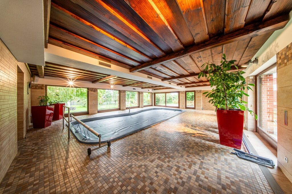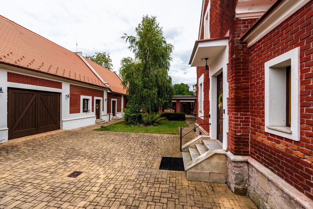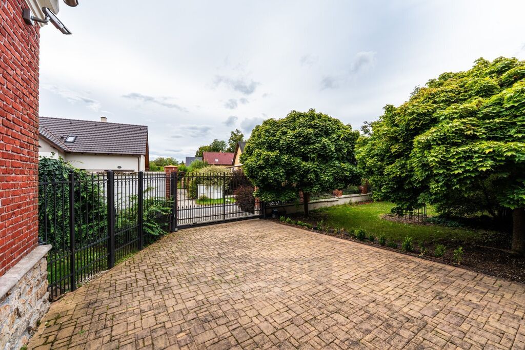 Pozemek – celo obezděný, vjezdové brány a vstupní vrata, 2 x příjezdové nádvoří, před zahrada s kovaným plotem a bránou do ulice, vnitřní nádvoří, zahrada se zatravněnou plochou a s ovocnými stromy, parková část zahrady s jezírkem, okrasné keře a rostliny, ovocné stromy, na všech zahradních plochách zavlažovací systém, samostatné vrty pro tepelná čerpadla, a vrt pro zavlažování a jezírko, šachty se systémem k zavlažování.
