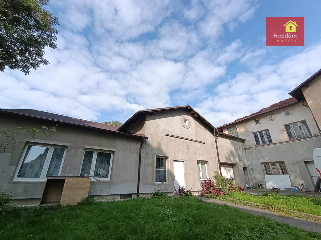 V pravé části se nachází dvoupodlažní budova, kde se může umístit Vaše sídlo firmy, ordinace, kanceláře nebo dva-tři byty, celá táto část vyžaduje větší investici a rekonstrukci.