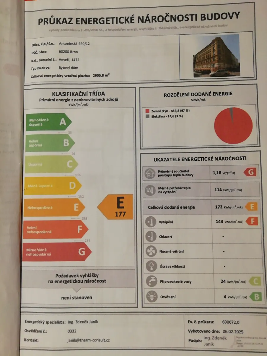 Průkaz energetické náročnosti budovy (PENB) třída E.