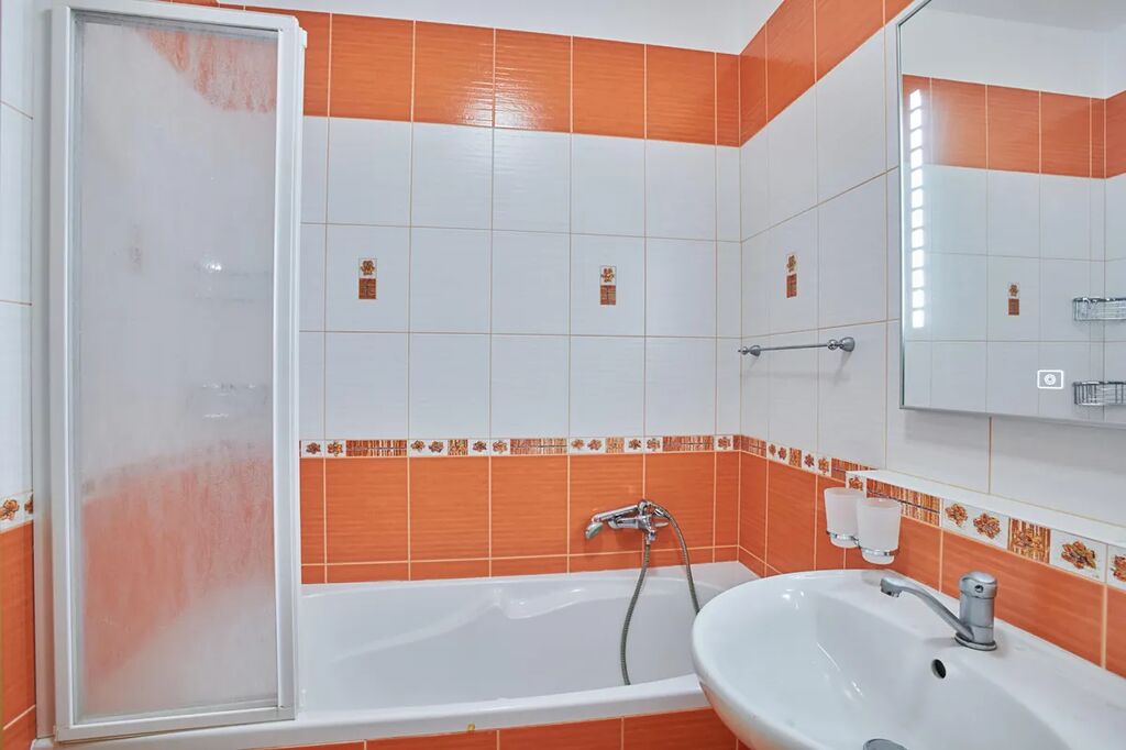 Jedná se o prostorný byt s orientací na západ obývací pokoj s kuchyňským koutem (34 m2) a vstupem na lodžii, 2x samostatný pokoj (14m2 a 12 m2), koupelna s vanou, WC zvlášť.