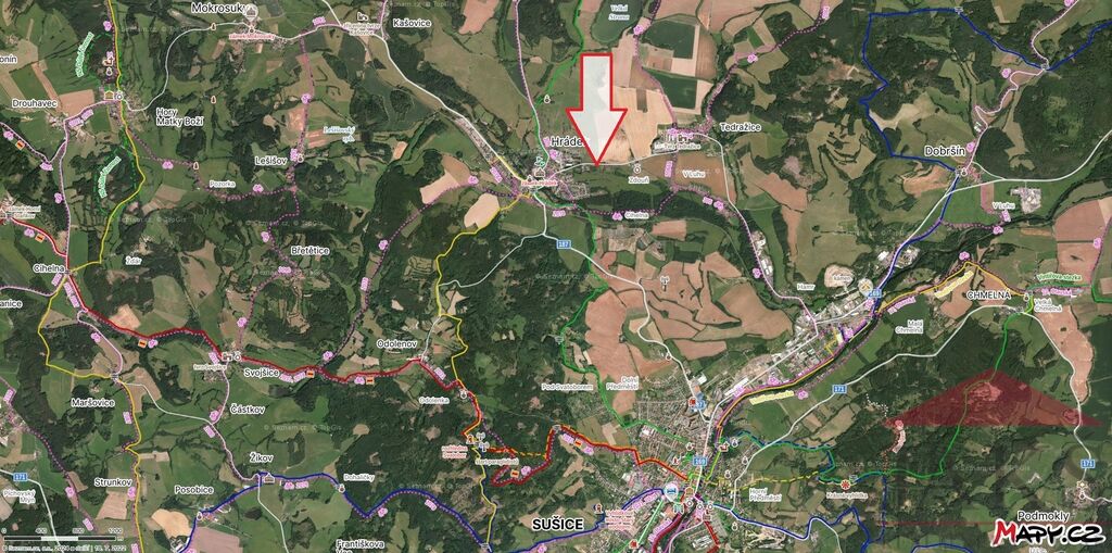 Velká zahrada s výbornou orientaci na jih a hezkým výhled na Zdouň (dominantní kostel v Tedražicích), Svatobor a okolní krajinu, situovaný v klidné části obce Hrádek u Sušice 5 km (obchod, pošta, obecní úřad s knihovnou, restaurace, hostinec, dobré BUS a vlakové spojení do Sušice a Klatov).