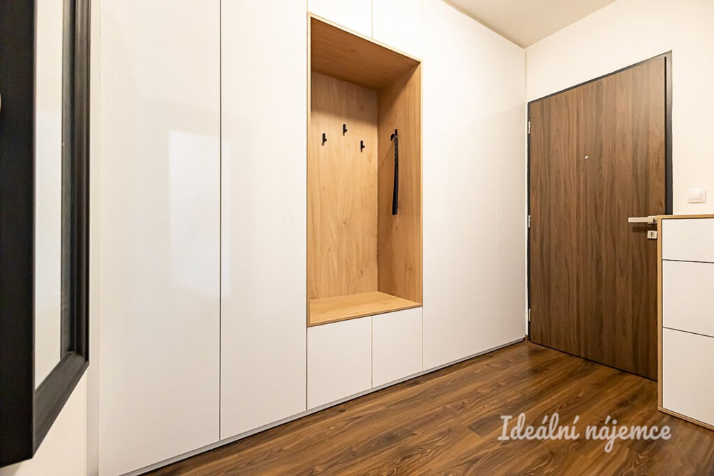 Byt se nabízí plně zařízený tak, jak vidíte na fotografií. Velkou výhodou je jeho vestavný nábytek, díky čemuž Vám poskytne nadstandartní množství úložných prostor.