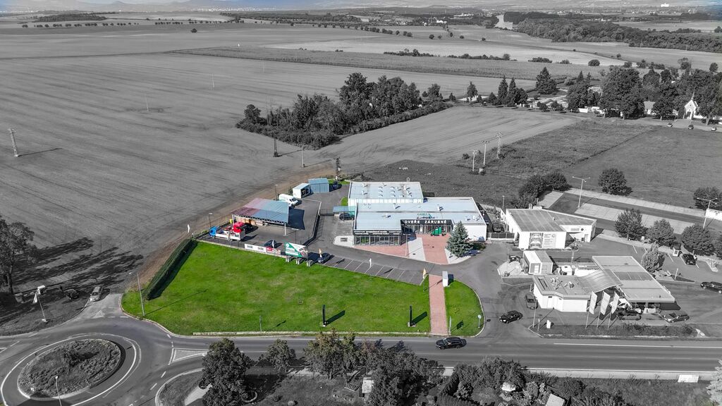 Objekt se nachází v blízkosti hlavní cesty ulice Hornická. Zeleň před objektem má plochu celkem 1 074 m2 a samotná budova posléze 930 m2. U objektu lze zaparkovat na vystaveném parkovišti. Využít můžete pro své podnikání i svislé reklamní totemy, které jsou nově instalují, disponují LED osvětlením s možností stmívání, a které jsou umístěny přímo u hlavní cesty. V okolí hlavního objektu se nachází několik hal, plechových garáží a zastřešených skladovacích prostor, kde můžete bez problému zaparkovat celý svůj vozový park. V samotných halách lze uskladnit jakékoliv vaše produkty či výrobky. Okraj objektu je průchozí ze všech stran. Pozemek je kompletně oplocený, z velké části je oplocení nové. V roce 2025 bylo venkovní osvětlení vyměněno za úsporné LED osvětlení.