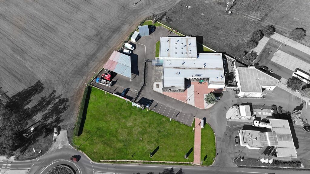 Objekt se nachází v blízkosti hlavní cesty ulice Hornická. Zeleň před objektem má plochu celkem 1 074 m2 a samotná budova posléze 930 m2. U objektu lze zaparkovat na vystaveném parkovišti. Využít můžete pro své podnikání i svislé reklamní totemy, které jsou nově instalují, disponují LED osvětlením s možností stmívání, a které jsou umístěny přímo u hlavní cesty. V okolí hlavního objektu se nachází několik hal, plechových garáží a zastřešených skladovacích prostor, kde můžete bez problému zaparkovat celý svůj vozový park. V samotných halách lze uskladnit jakékoliv vaše produkty či výrobky. Okraj objektu je průchozí ze všech stran. Pozemek je kompletně oplocený, z velké části je oplocení nové. V roce 2025 bylo venkovní osvětlení vyměněno za úsporné LED osvětlení.