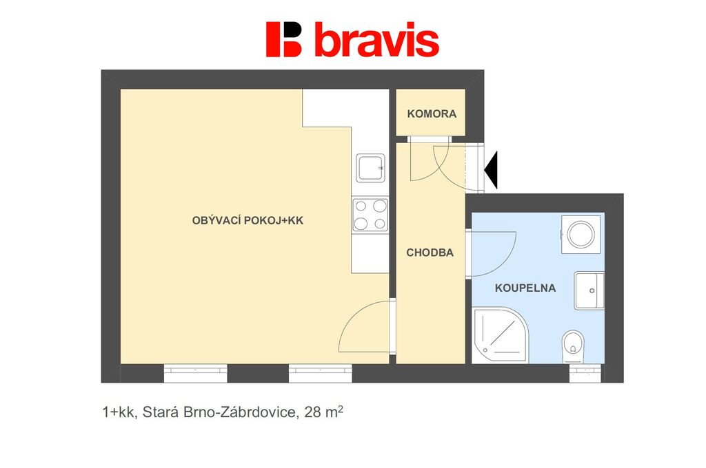 Ve výhradním zastoupení majitele nabízíme k pronájmu zařízený byt o dispozici 1+kk o užitné ploše 28 m² na velmi žádané adrese – Brno, ulice Stará.