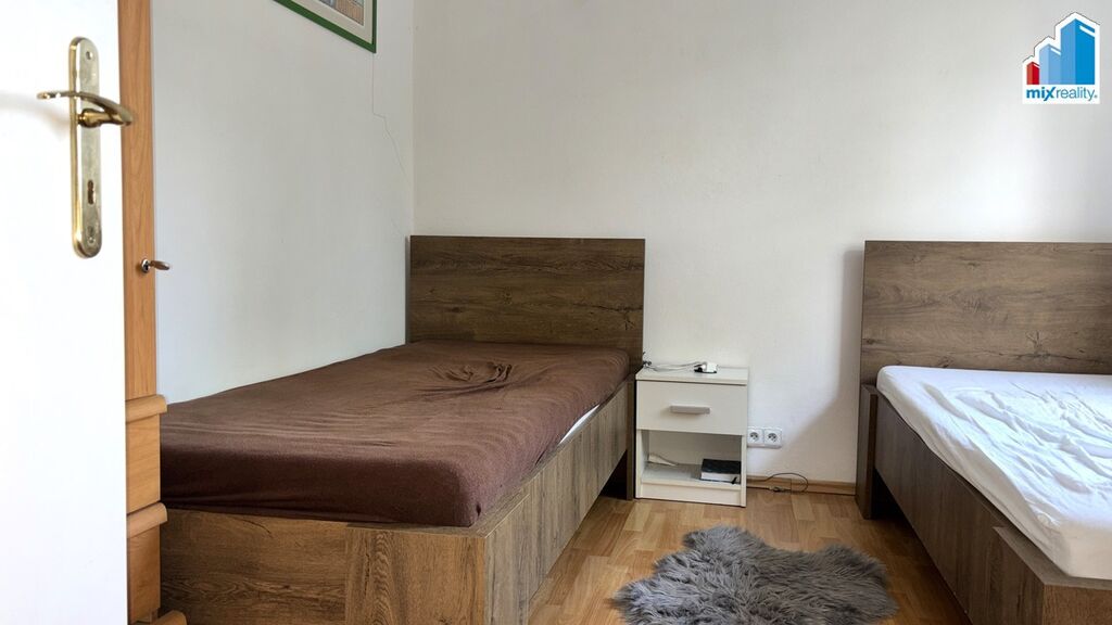 Dispozice bytu: předsíň, chodba, koupelna s vanou, samostatné WC, ložnice a prostorný obývací pokoj s kuchyňským koutem a vstupem na balkon. K bytu náleží také sklepní kóje, vlastní parkovací stání a garáž o velikosti 27 m² s elektřinou.
