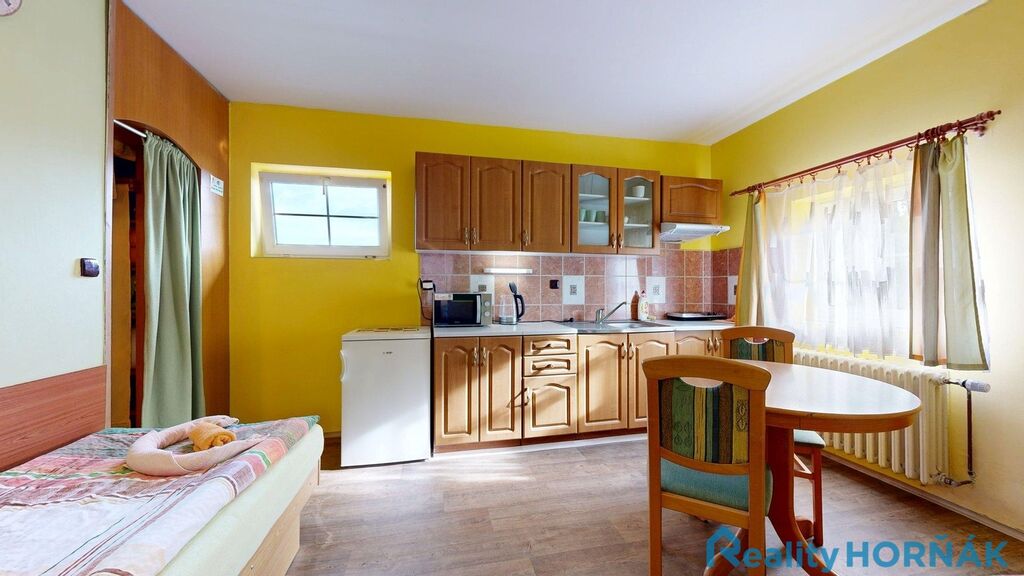Původní rodinný dům byl vystavěn v roce 1963. V roce 1998 byla realizována rekonstrukce, při níž byla kompletně zrekonstruována elektroinstalace, vodoinstalace a odpady. V roce 2001 proběhla přístavba a půdní vestavba, jejímž cílem bylo spojit rodinné bydlení s podnikáním. Nabízená nemovitost je tak v současné době dvoupodlažním (druhým podlažím je obytné podkroví), částečně podsklepeným rodinným domem s prostory k podnikání v oblasti ubytování osob a hostinské činnosti.