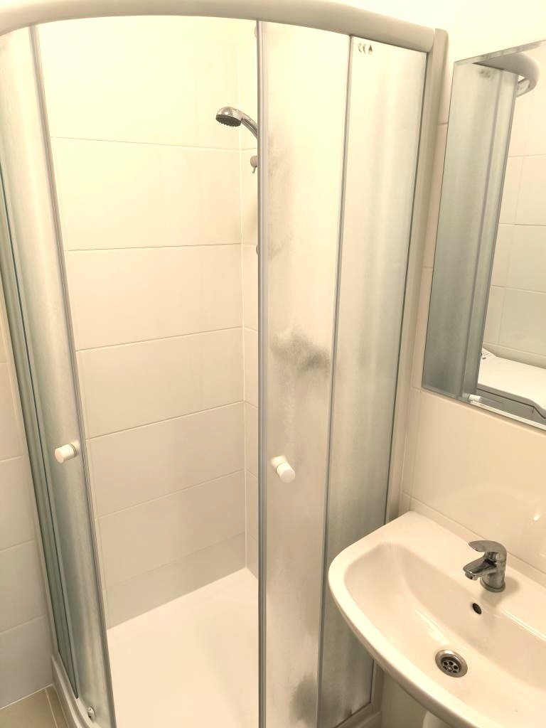 Prostorný pokoj s kuchyňským koutem : nová kuchyňská linka, včetně lednice, sporáku, mikrovlnné trouby, dále pak ložnice. Na podlaze renovované parkety, dlažba, PVC. V předsíni je prostorná vestavěná šatní skříň. V koupelně je sprchový kout, umyvadlo, pračka. WC je zvlášť, s malým umyvadlem. Kabelová televize, internet zaveden. V suterénu k dispozici sklepní kóje.