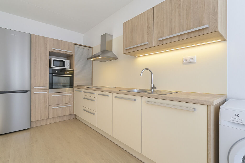 Byt se nabízí plně vybavený dle fotografií. Kuchyně disponuje myčkou, lednicí, varnou deskou, digestoří, sušičkou, elektrickou a mikrovlnou troubou. Obývací část je zařízena klimatizací, pohovkou, televizí a jídelním setem. Součástí ložnice je postel, komoda a skříň. Obývací pokoj je jako jediný průchozí.