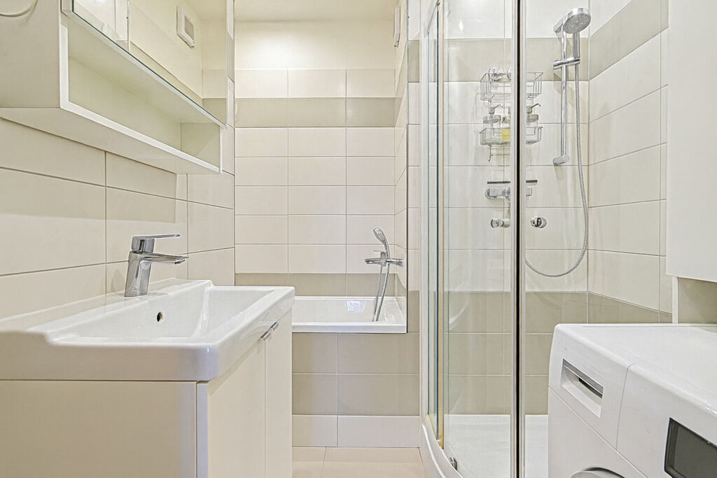 V koupelně je vana, sprcha, pračka a umyvadlo. Toaleta je umístěna samostatně.