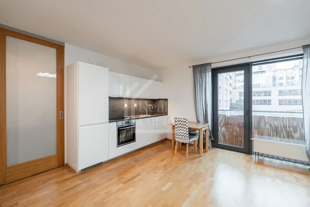 Nabízíme k pronájmu moderní, částečně zařízený byt 1+kk + balkon (44m² + 4m²) k pronájmu, který se nachází v 2 NP novostavby s výtahem v ulici Křižíkova, Praha 8 - Karlín. Dominantou bytu je obývací pokoj s kuchyňským koutem a vstupem na podélný balkón. Dále se v bytě nachází koupelna se sprchovým koutem, toaletou a pračkou s dostatkem místa na případnou sušičku. V předsíni velká vestavná skříň s dostatkem místa na uskladnění i rozměrnějších věcí. Dále k bytu náleží i parkovací místo přímo v domě. Velice žádaná lokalita se snadnou dostupností do centra. Veškerá občanská vybavenost v okolí. Přímo u stanice metra Křižíkova. Vhodné pro max 2 osoby.