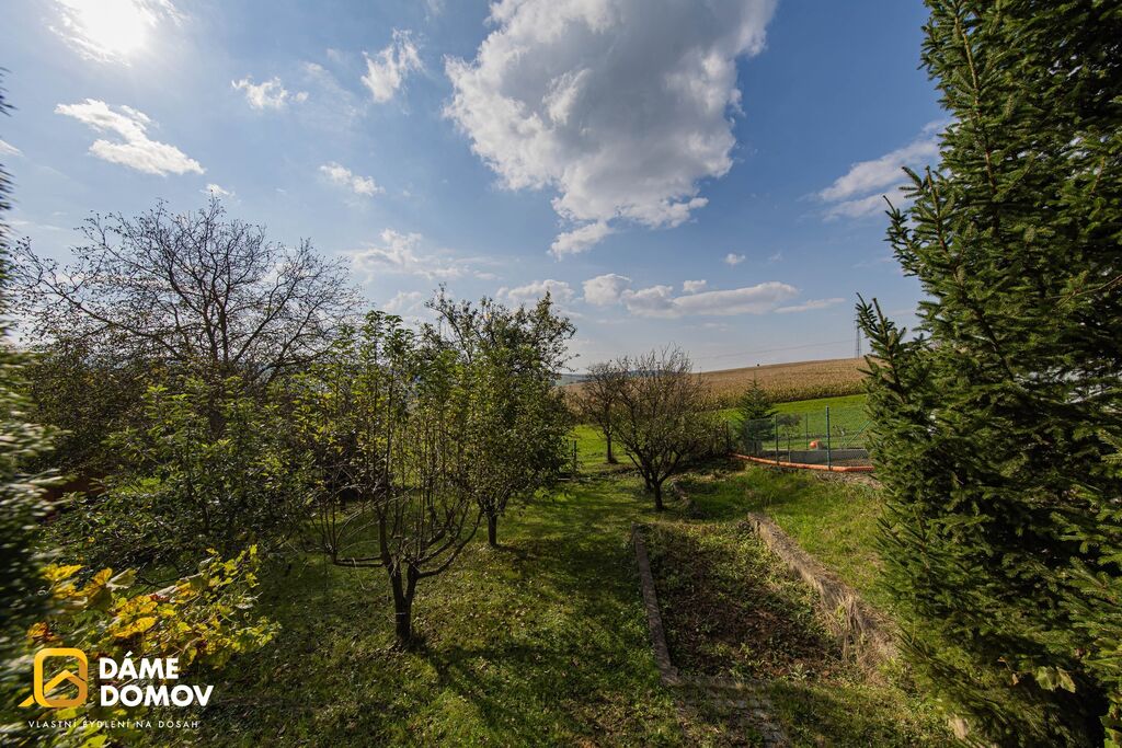 Na zahradě se nachází ovocné stromy a z její zadní části je působivý výhled do okolních polí a přírody.