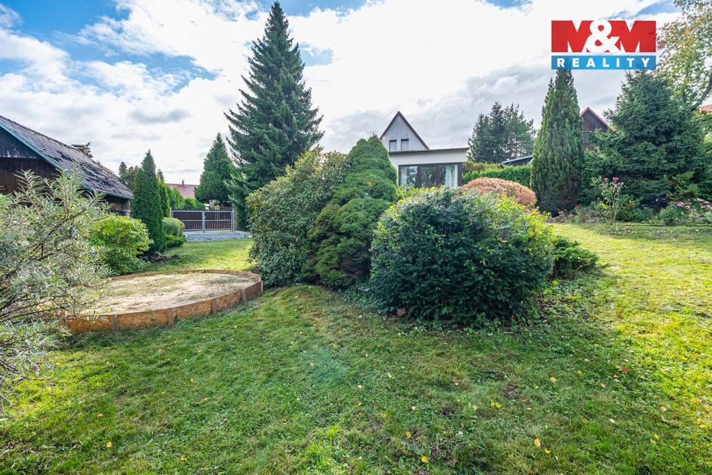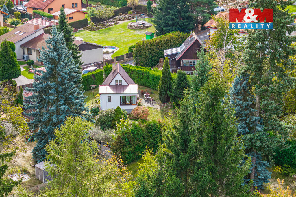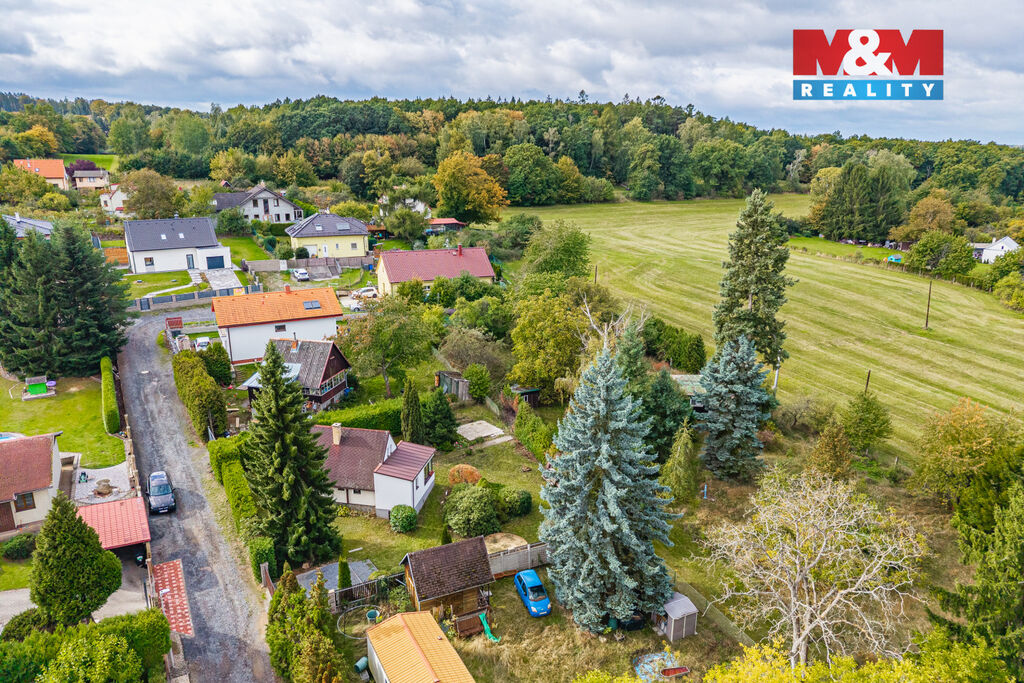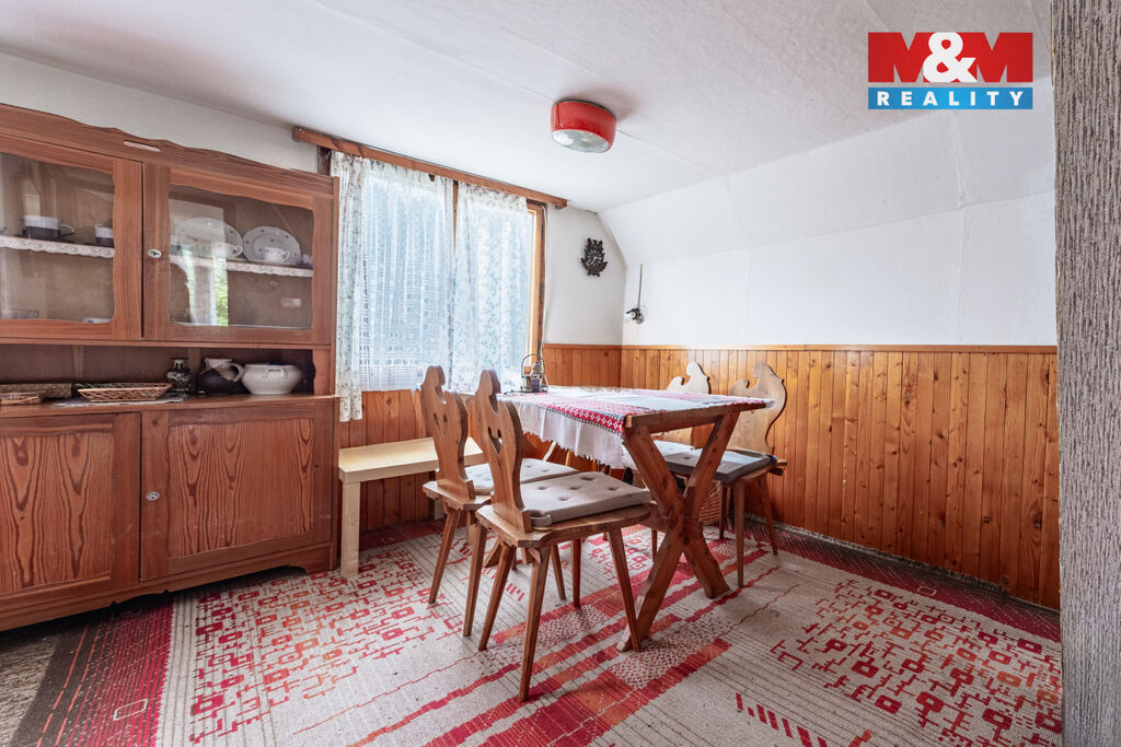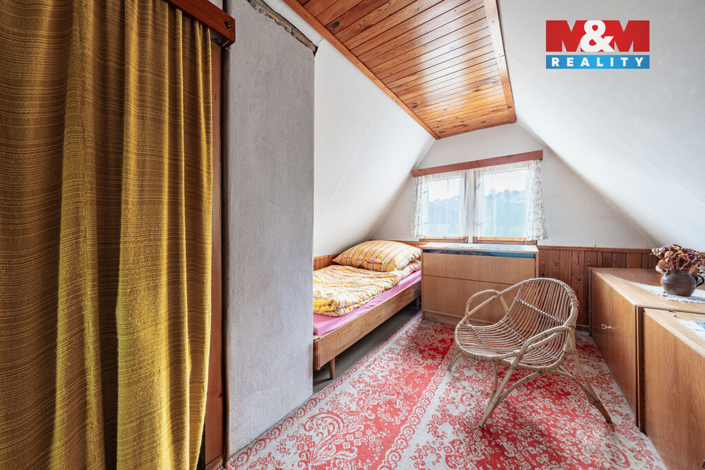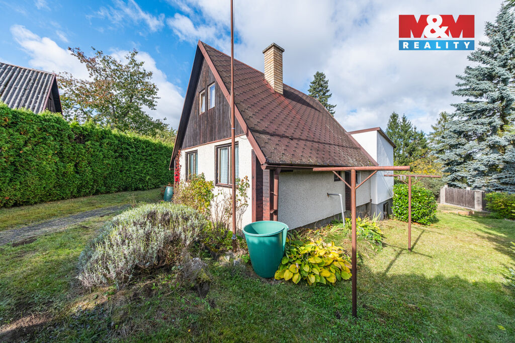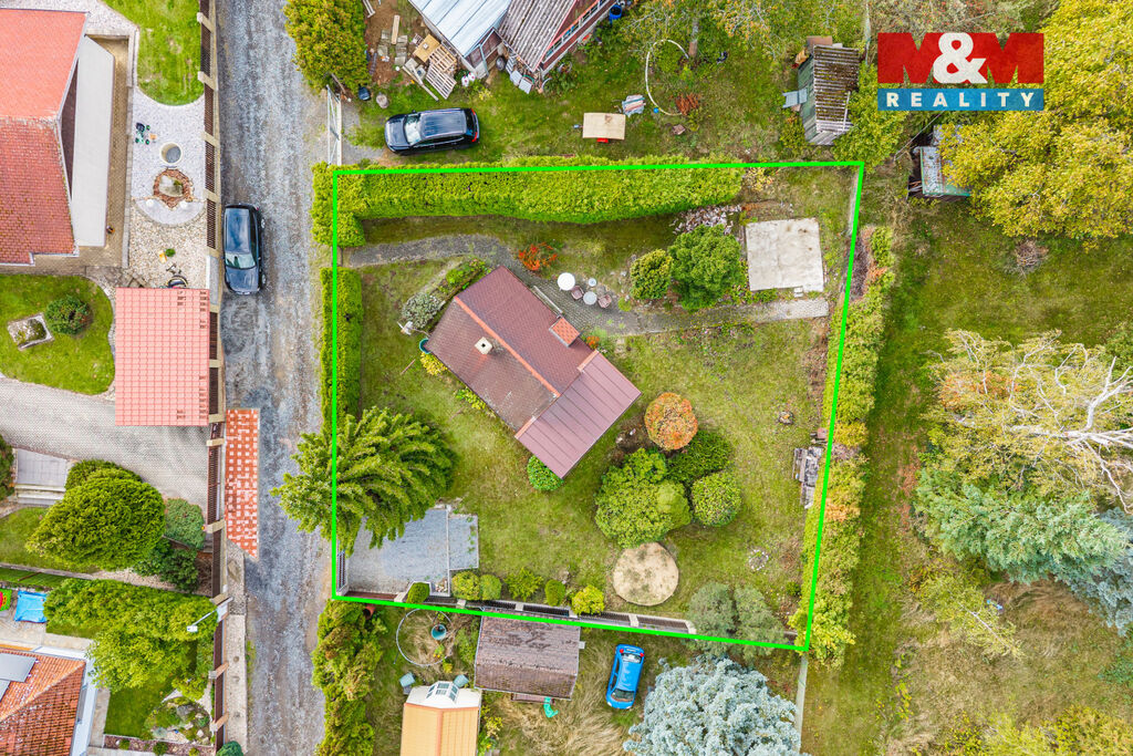 K chatě patří pozemek o velikosti 555 m², který nabízí dostatek prostoru pro zahradničení či venkovní posezení.