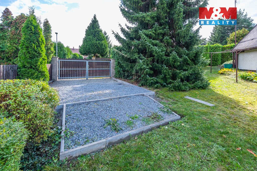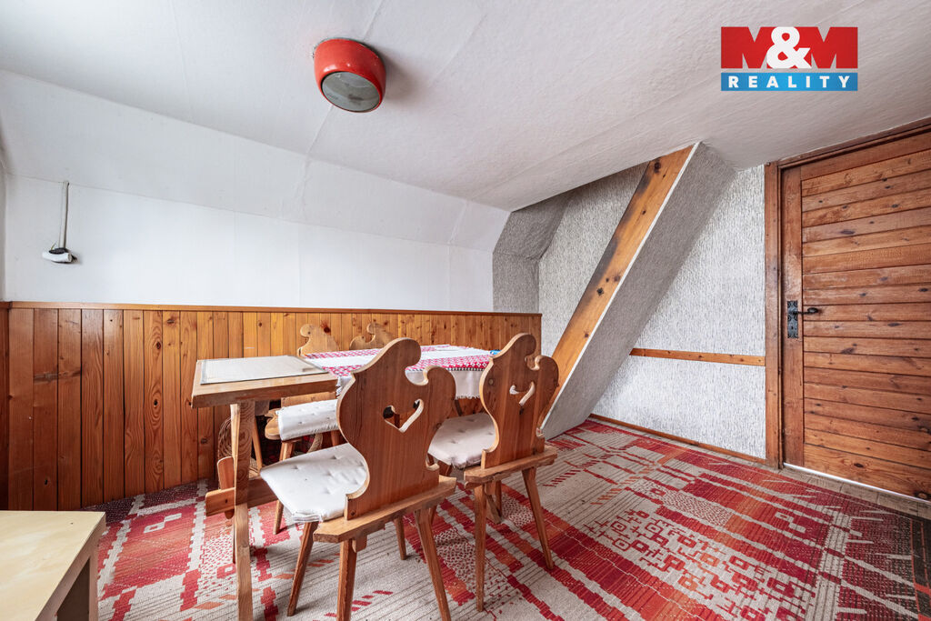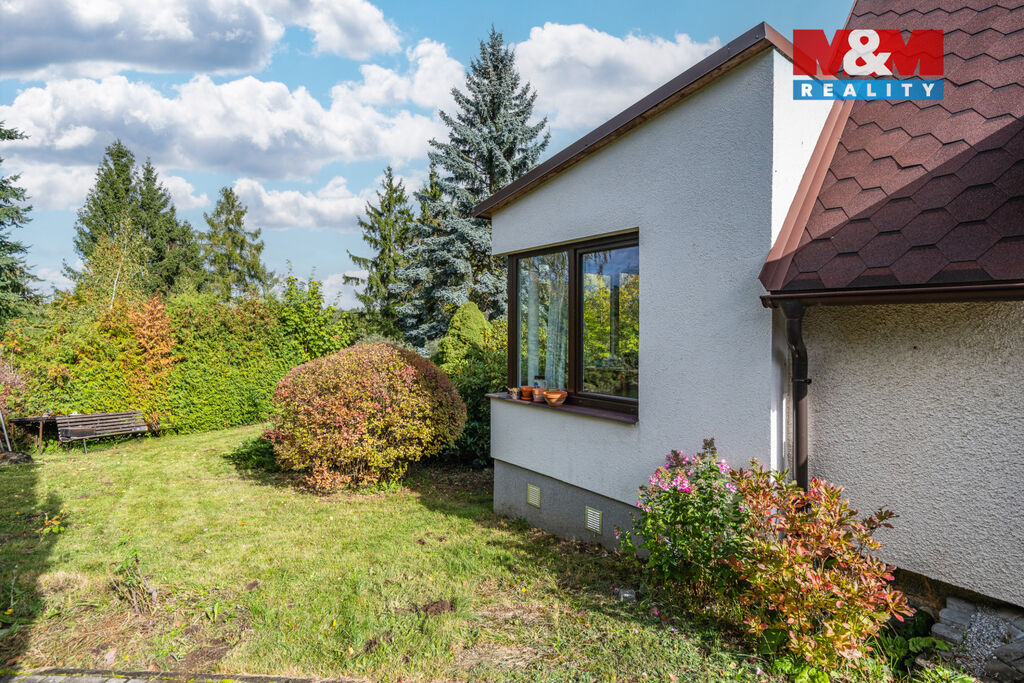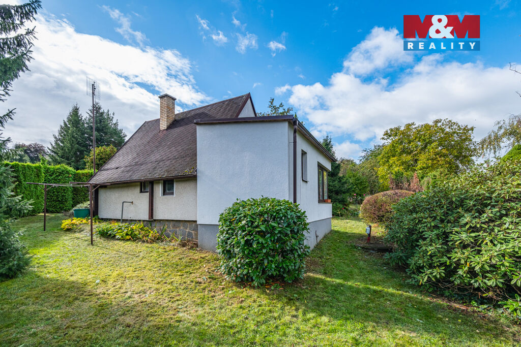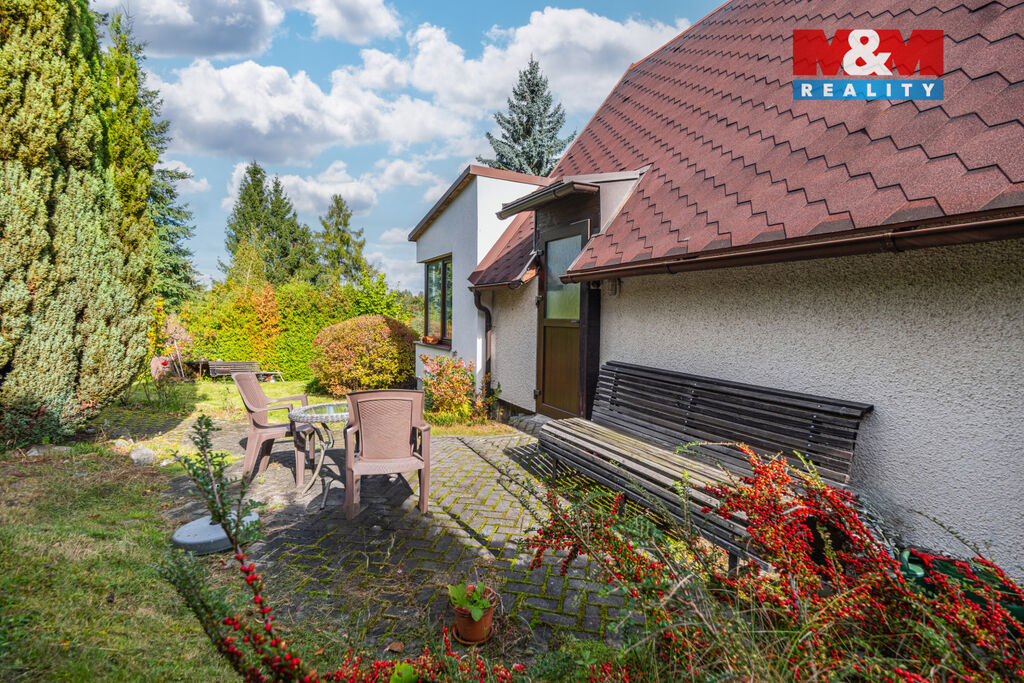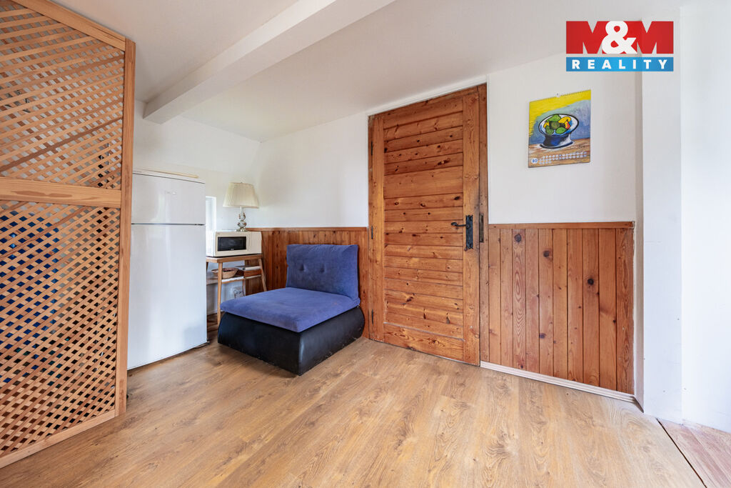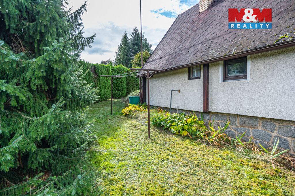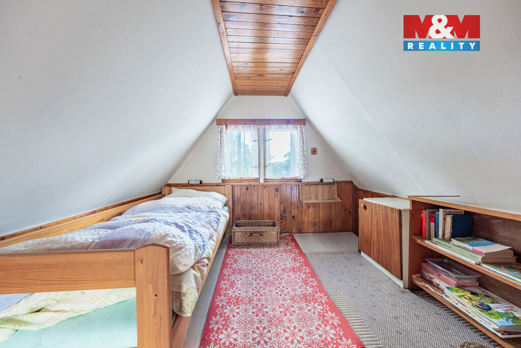 K chatě patří pozemek o velikosti 555 m², který nabízí dostatek prostoru pro zahradničení či venkovní posezení.