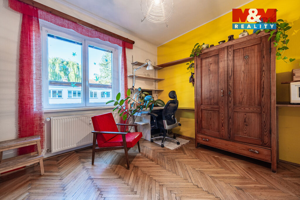Vytápění zajišťuje společná plynová kotelna – ústřední topení; pro atmosféru a přitopení poslouží zmíněná kamna. K bytu náleží velká sklepní kóje. Parkování pohodlně přímo před domem – místa je dost i pro více aut.