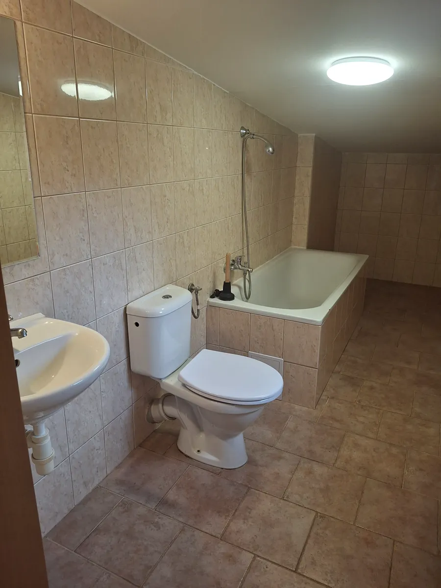 Bytová jednotka nabízí 2 samostatné pokoje v přízemí. V jednom z nich vestavěná šatní skříň. Koupelnu s vanou a bidetem a samostatnou toaletou. V chodbě plynový kotel pouze pro byt. Po točitém schodišti se vchází do patra s obývacím pokojem, kuchyňským koutem , který je vybavený varnou deskou, digestoří, elektrickou troubou a myčkou na nádobí. Z obývacího pokoje se vchází na venkovní terasu situovanou též do klidného vnitrobloku. Další prostorná koupelna s vanou a toaletou.