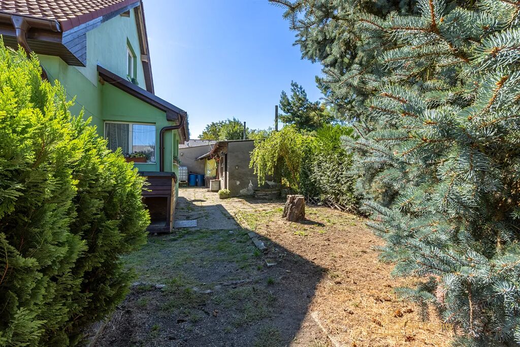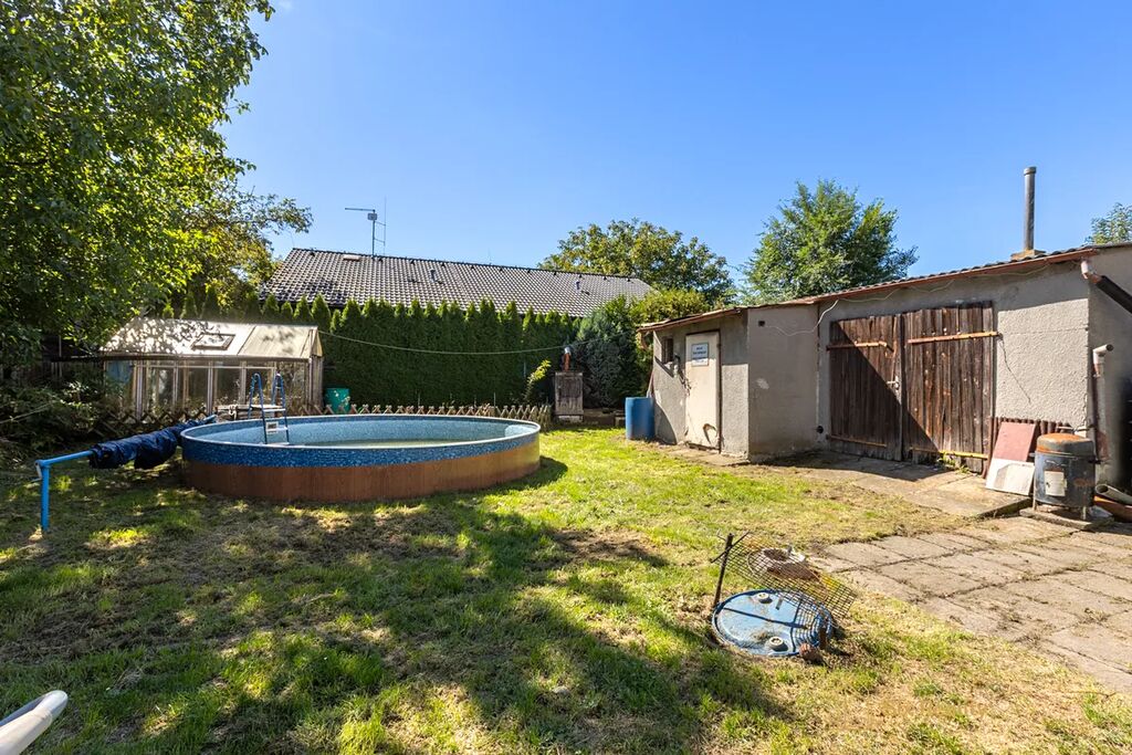 Pozemek je rovinatý, zatravněný a kompletně obklopený zelení. I tady budete mít spoustu místa pro vaše každodenní aktivity s dětmi. Jistě také oceníte kopanou studnu na pozemku.