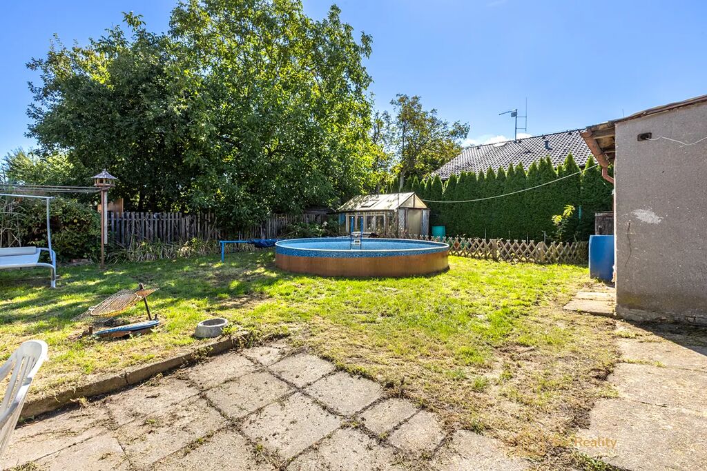 Nabízíme vám rodinný dům s dispozicí 5+1 dvěma koupelnami a dvěma toaletami s celkovou užitnou plochou 166 m2 po částečné rekonstrukci. Dům je dvoupodlažní a na pozemku o velikosti 838 m2 nechybí bazén a garáž pro jeden automobil. Nová střecha, plastová okna a zateplení s fasádou je již hotové – nic z toho už nemusíte řešit.