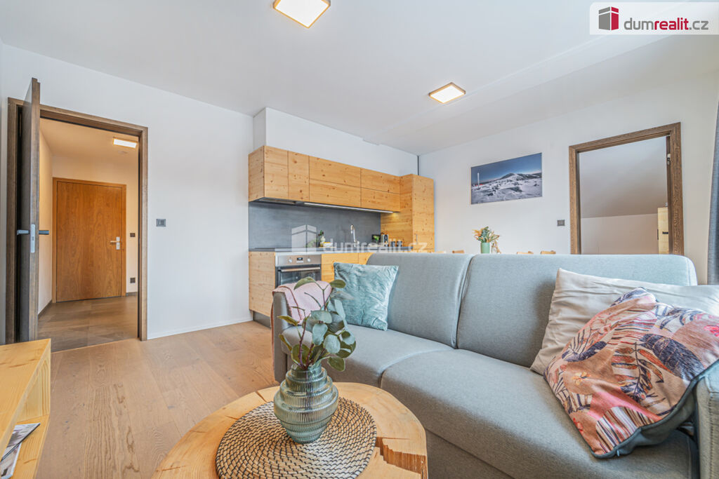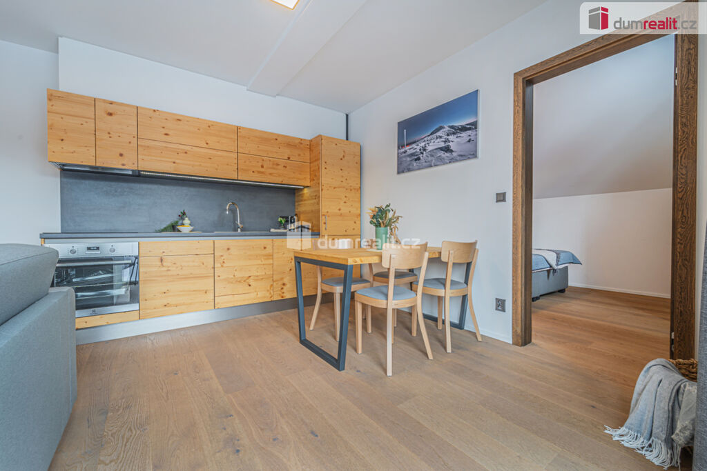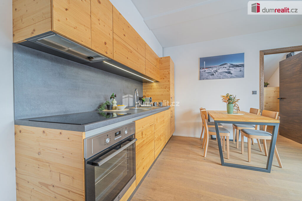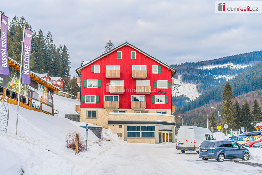 možný prodej apartmánu v Peci pod Sněžkou v nově postavené budově. Hledáte-li druhý domov nebo investiční příležitost v lokalitě, kde ceny za poslední roky rostou, pak je tento apartmán nejlepší volbou. Při vstupu do apartmánu na vás na první pohled dýchne horská atmosféra dokreslená dřevěnými prvky. Na druhý pohled si všimnete, jak je apartmán kvalitně udělaný. Je kompletně vybavený vkusným nábytkem, není tedy třeba nic kupovat a zařizovat. Po zimní procházce jistě oceníte podlahové vytápění zabudované pod dřevěnou podlahu. S nádobím si taky nemusíte dělat starosti, umyje ho za vás myčka. Při ranní kávě si vychutnáte pohled na jezero či okolí z vašeho balkonu. Když začne sněžit, můžete to pozorovat z poza francouzských oken. A pokud se budete chtít vydat autem po okolí, nečeká vás žádné škrabání mrazu či shrabávání sněhu, součástí je totiž garážové stání. Sjedete výtahem rovnou do garáží, kde nasednete a vyrazíte. Při návratu ze sjezdovky oceníte sklepní kóji, kam odložíte lyže či další věci. Když se vám nebude chtít vařit, zajdete do restaurace naproti nebo vedle. V létě či na jaře se zde také nudit nebudete. Můžete si vyšlápnout Sněžku nebo se jet projet na kole po jedné z cyklistických tras. V případě pronájmu můžete využít plný servis, kdy je zajištěn jak přísun klientely, tak úklid apod. Byt má podlahovou plochu dle prohlášení vlastníka 48 m² plus balkon. Poplatky včetně fondu oprav jsou 6581 Kč. Byt je ve 4.podlaží a je jižně orientovaný. Ev. číslo: 652645.