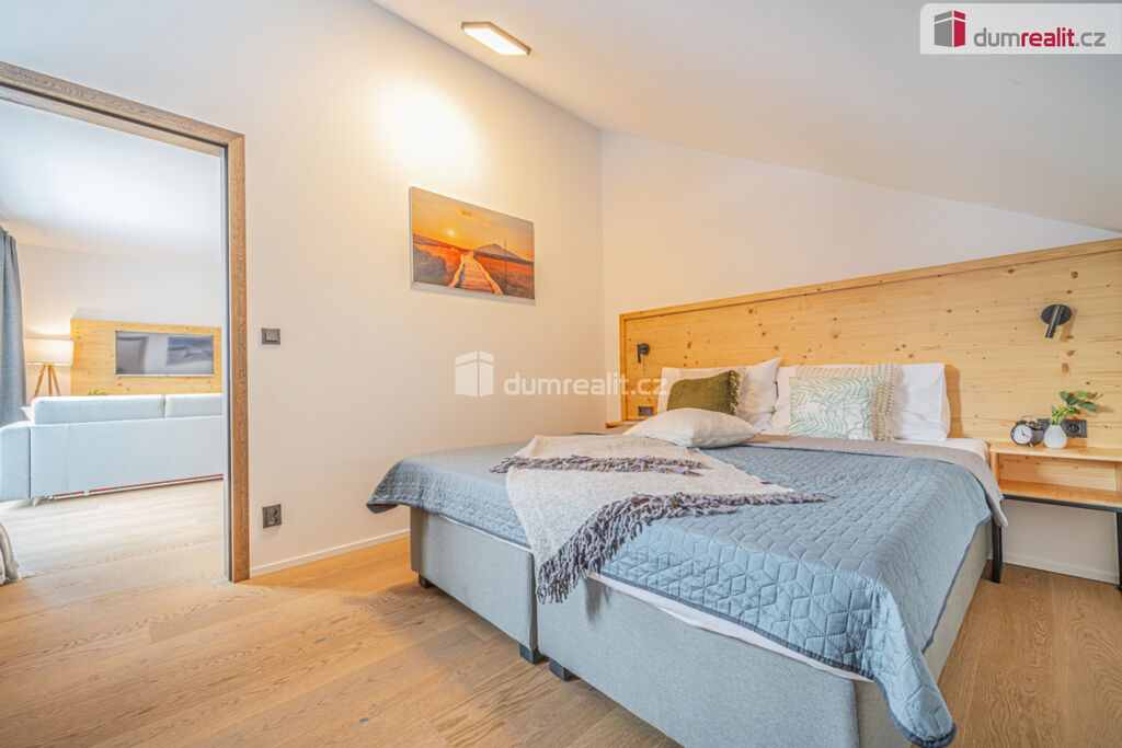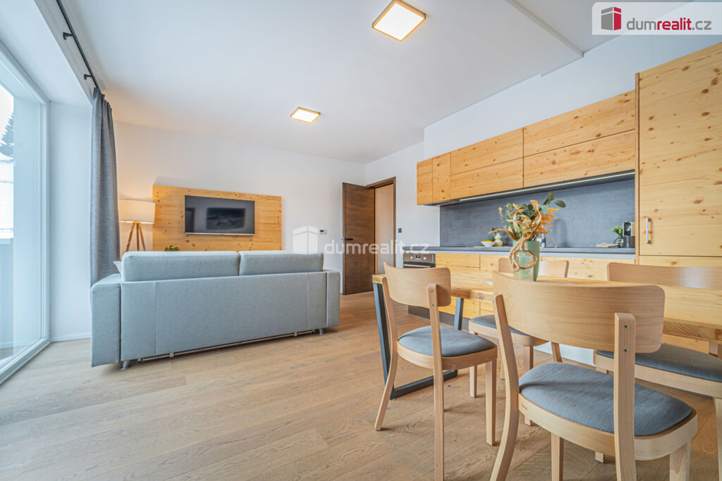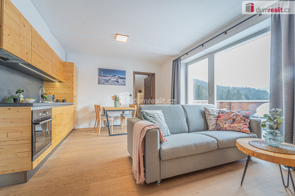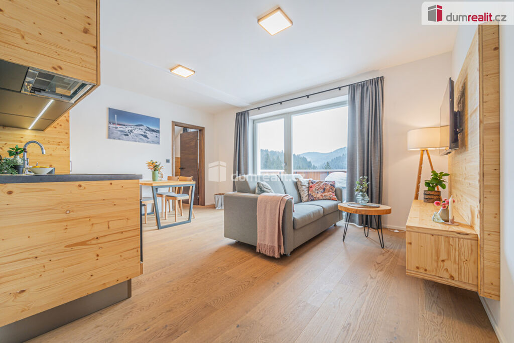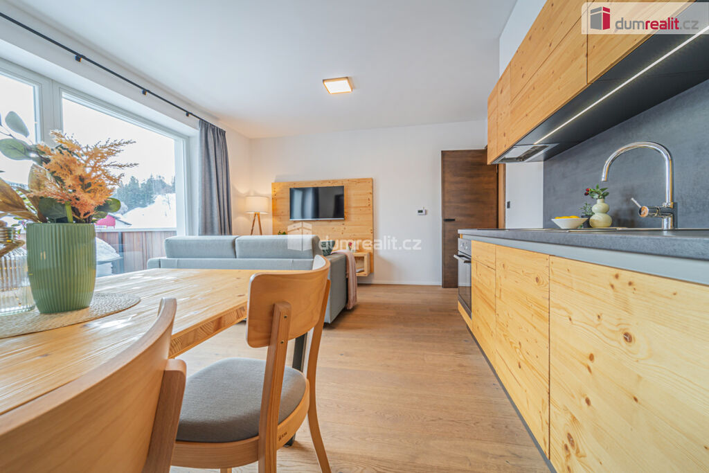 možný prodej apartmánu v Peci pod Sněžkou v nově postavené budově. Hledáte-li druhý domov nebo investiční příležitost v lokalitě, kde ceny za poslední roky rostou, pak je tento apartmán nejlepší volbou. Při vstupu do apartmánu na vás na první pohled dýchne horská atmosféra dokreslená dřevěnými prvky. Na druhý pohled si všimnete, jak je apartmán kvalitně udělaný. Je kompletně vybavený vkusným nábytkem, není tedy třeba nic kupovat a zařizovat. Po zimní procházce jistě oceníte podlahové vytápění zabudované pod dřevěnou podlahu. S nádobím si taky nemusíte dělat starosti, umyje ho za vás myčka. Při ranní kávě si vychutnáte pohled na jezero či okolí z vašeho balkonu. Když začne sněžit, můžete to pozorovat z poza francouzských oken. A pokud se budete chtít vydat autem po okolí, nečeká vás žádné škrabání mrazu či shrabávání sněhu, součástí je totiž garážové stání. Sjedete výtahem rovnou do garáží, kde nasednete a vyrazíte. Při návratu ze sjezdovky oceníte sklepní kóji, kam odložíte lyže či další věci. Když se vám nebude chtít vařit, zajdete do restaurace naproti nebo vedle. V létě či na jaře se zde také nudit nebudete. Můžete si vyšlápnout Sněžku nebo se jet projet na kole po jedné z cyklistických tras. V případě pronájmu můžete využít plný servis, kdy je zajištěn jak přísun klientely, tak úklid apod. Byt má podlahovou plochu dle prohlášení vlastníka 48 m² plus balkon. Poplatky včetně fondu oprav jsou 6581 Kč. Byt je ve 4.podlaží a je jižně orientovaný. Ev. číslo: 652645.