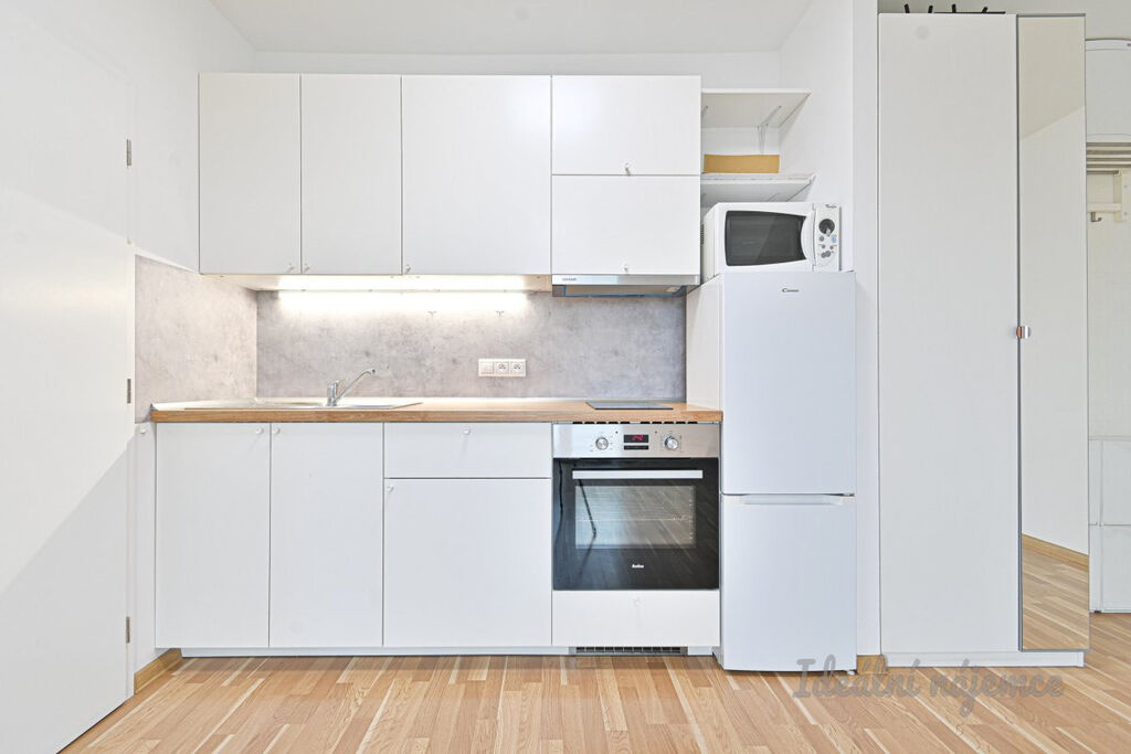Byt se nabízí částečně vybavený. Kuchyně disponuje lednicí, varnou deskou, digestoří, mikrovlnnou troubou a elektrickou troubou. Součástí hlavní místnosti je klimatizace a vstup na prostorný balkon. V koupelně najdeme sprchový kout, umyvadlo se skříňkou a toaletu. Ložnice zůstává bez vybavení.