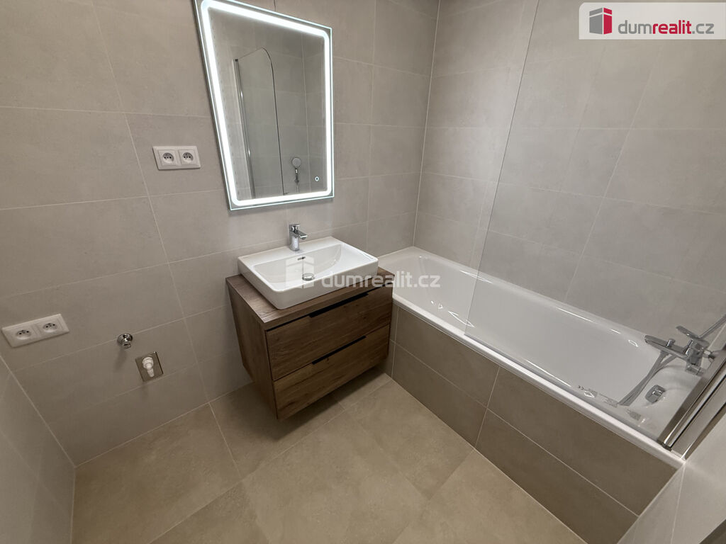 Dumrealit.cz Vám zprostředkuje možný pronájem zcela nového luxusního bytu 2+kk 61 m² + lodžie 8 m² v novém projektu VILADOMY Zličín. Jedná se o nový rezidenční projekt na západní městské části Zličín. Vstup do velké předsíně, kde je prostor na botník, šatní skříň podle vašich představ. Dále k dispozici komora, kde se nachází vlastní ovládání tepelného čerpadla, který je svoji úsporností ideální pro vytápění a ohřev vody. Dále koupelna, která je vybavena vanou, umyvadlem, toaletou a prostorem pro pračku. Ložnice je neprůchozí a disponuje přímým vstupem na prostornou lodžii. Kuchyně je spojená s obývacím pokojem, je vyrobená na míru a je vybavena všemi nejmodernějšími spotřebiči. Z obývacího pokoje je rovněž vstup na lodžii s výhledem do zeleně. V bytě jsou kvalitní dřevěné podlahy, předokenní elektricky ovládané žaluzie, bezfalcové dveře, dřevěná okna. V domě je společný prostor na uskladnění kol či kočárku, dále úklidová místnost. V ceně je parkovací stání v garáži. Před domem je autobusová zastávka, odkud vás autobus odveze do Metropole Zličín, v pěší vzdálenosti se dostanete i na metro. Vhodné pro lidi, kteří mají rádi klid a komfort. Bez zvířat. Majitel požaduje kauci ve výši dvou nájmů. K nastěhování ihned. Doporučuji. Ev. číslo: 652703.