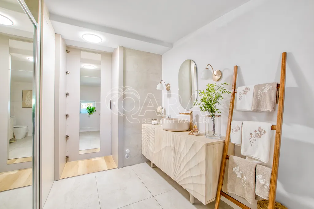Izolace: Stropy a střecha jsou vysoce zateplené (2x zelená střecha) a připravené na připojení fotovoltaiky. Okna jsou osazena trojskly a moderními francouzskými roletami.