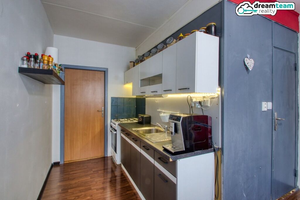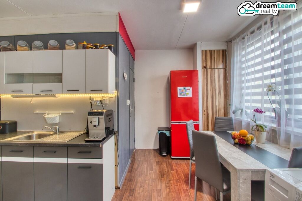 Tenhle byt není žádná králíkárna! Kuchyně má tolik místa, že se vám sem vejde pořádný jídelní stůl pro celou rodinu, velká lednice a dokonce i spižírna na zásoby. To v panelácích nenajdete na každém rohu. Novější šedobílá kuchyňská linka vás bude vaření pro celou rodinu bavit.