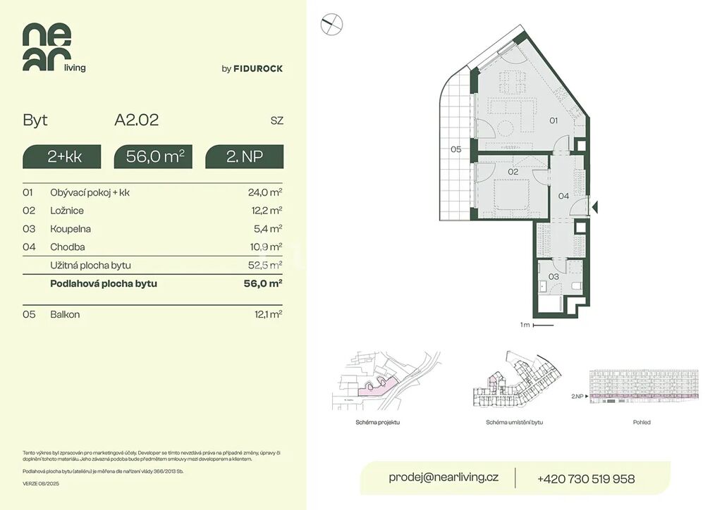 Nabízíme k prodeji byt 2+kk o podlahové ploše 56 m² s balkonem 5,9 m² v developerském projektu NEAR living v Praze 8, vznikajícím na pomezí Palmovky a Karlína.
