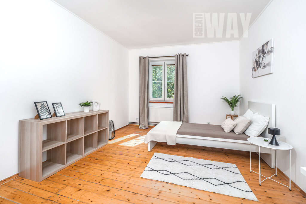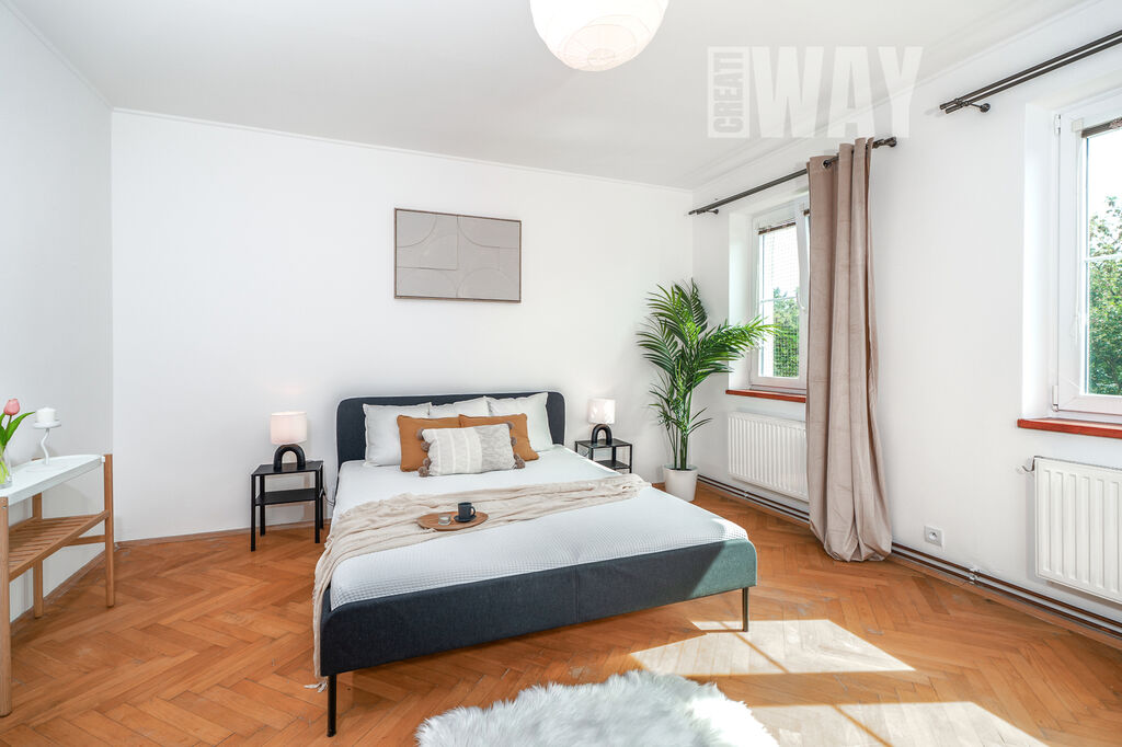Byt samotný nabízí čtyři samostatné pokoje - tři orientované k jihu a jeden, společně s kuchyní, k severu. Všechny pokoje jsou dostatečně velké, abyste se v nich cítili dobře.
