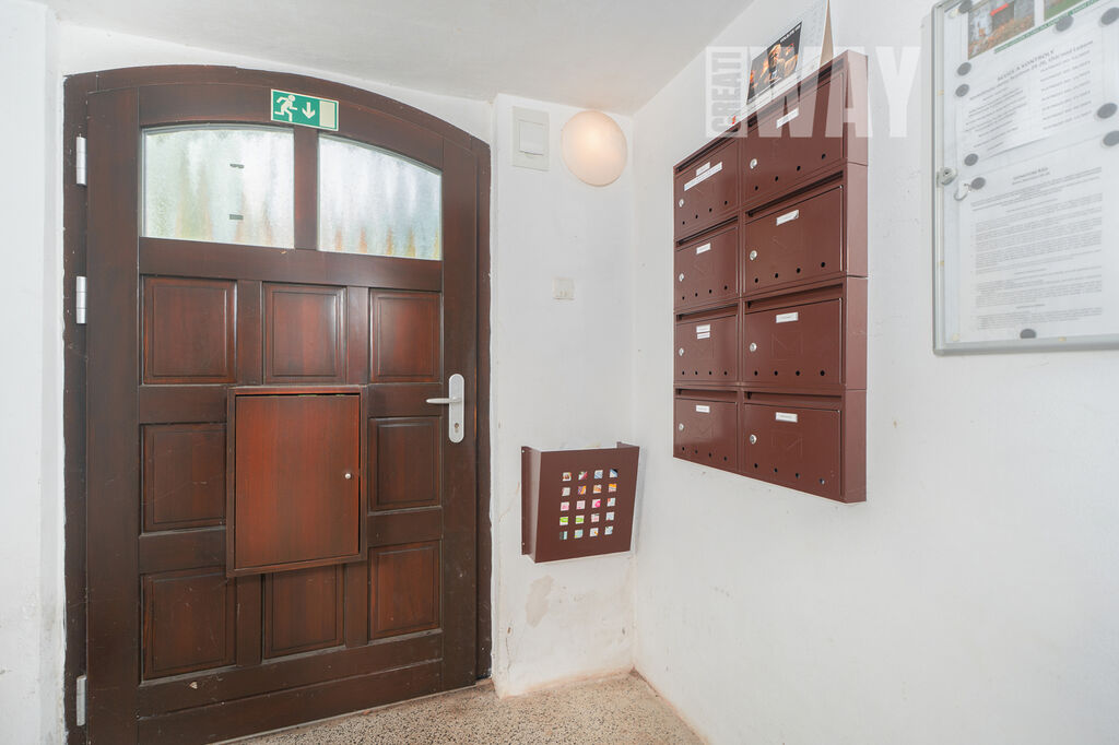 Cihlová stavba z poloviny 20. století s valbovou střechou a arkýři má přesně tu solidnost, kterou chcete od místa, kde budete žít. Fasáda je tradiční, schodiště poctivé betonové – a když vám někdo řekne, že „dům má charakter“, není to tentokrát fráze. Celý objekt prošel částečnou rekonstrukcí: nová střecha, nové rozvody, výměna oken a vchodových dveří. Zkrátka základ je pevný a modernizace už proběhla.