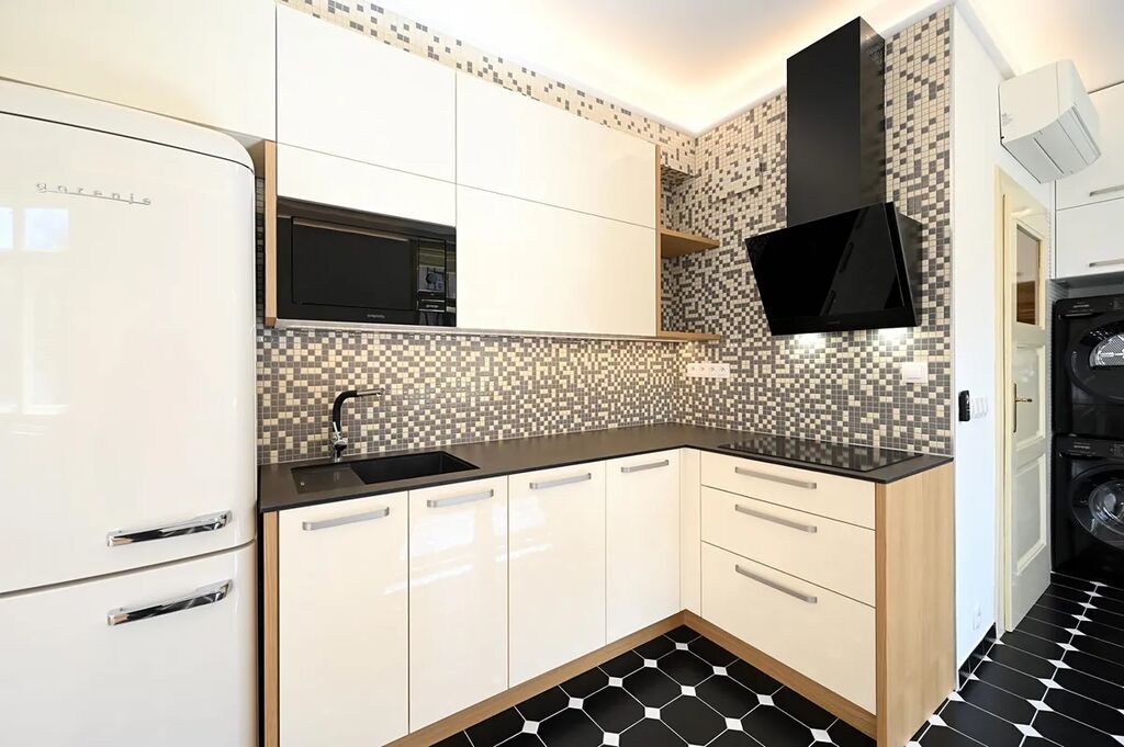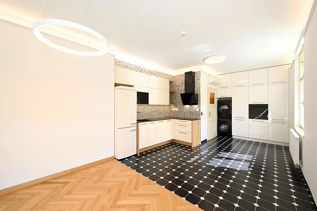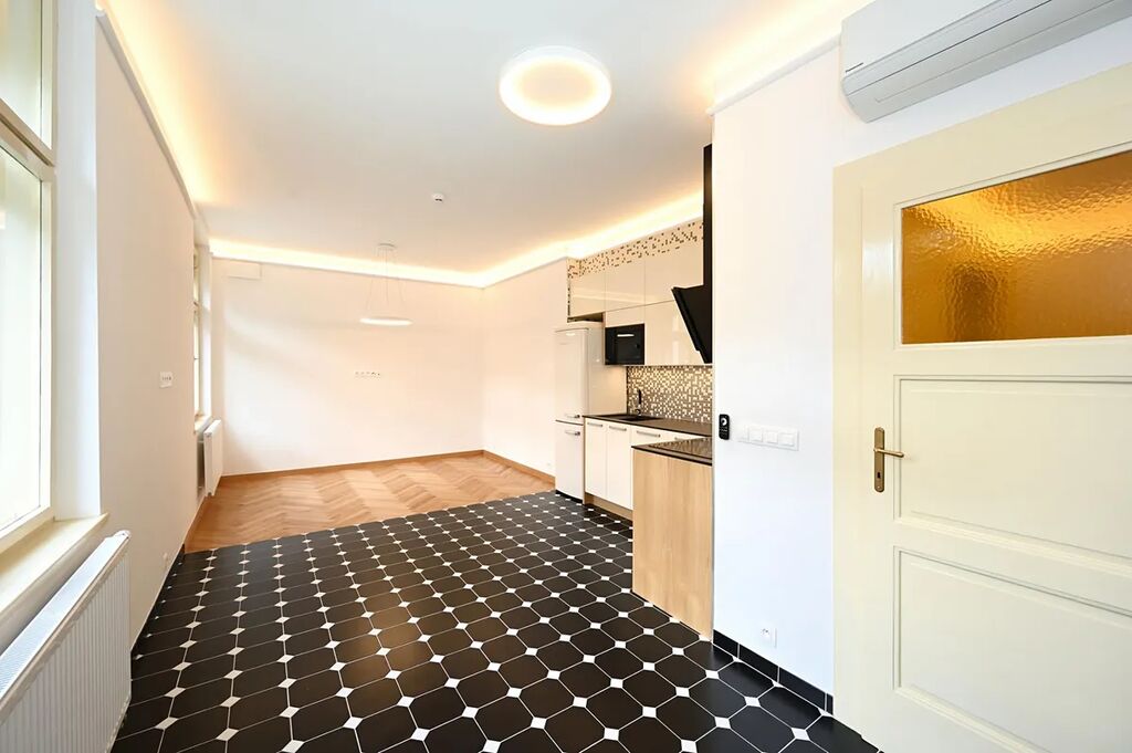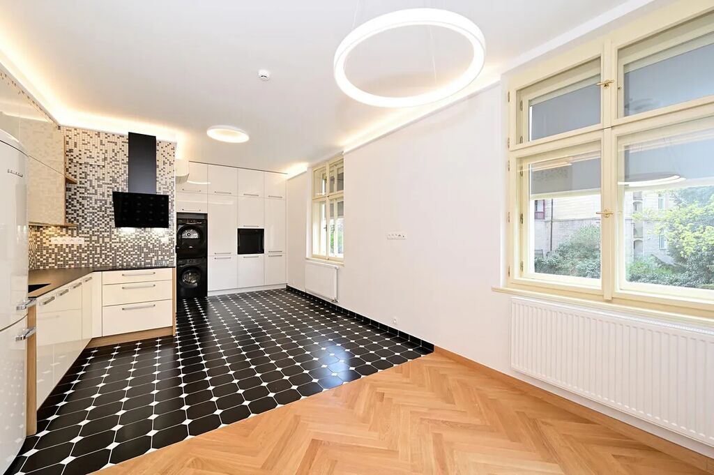 Bydlení s nádechem romantiky první republiky v historickém kontextu lokality. Velmi zdařilá rekonstrukce bytových jednotek činžovního domu, citlivá kombinace renovovaných původních prvků s moderním vybavením kuchyně a koupelny. Krásné dřevěné podlahy nebo dlažby, kvalitní kuchyňská linka se spotřebiči Gorenje. Okna vybavena elektrickými roletami. Variabilní osvětlení každé místnosti. K dispozici hezký čistý sklep.