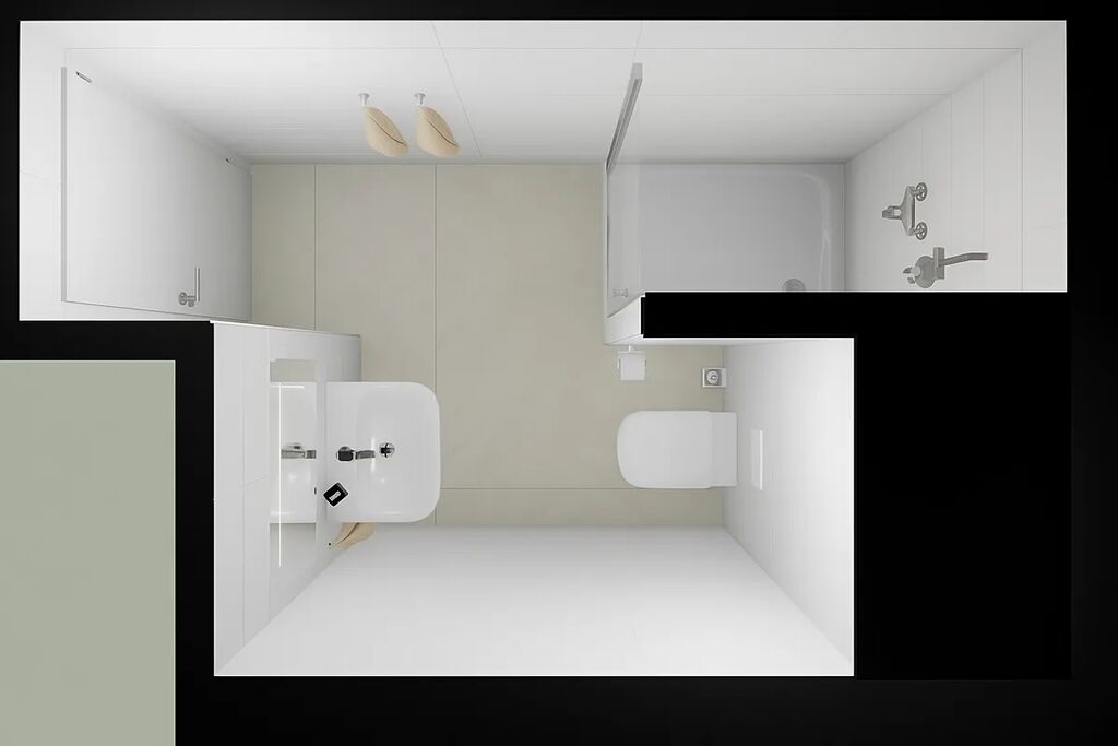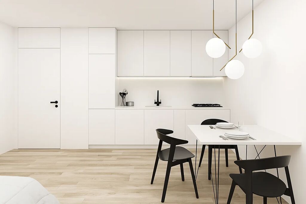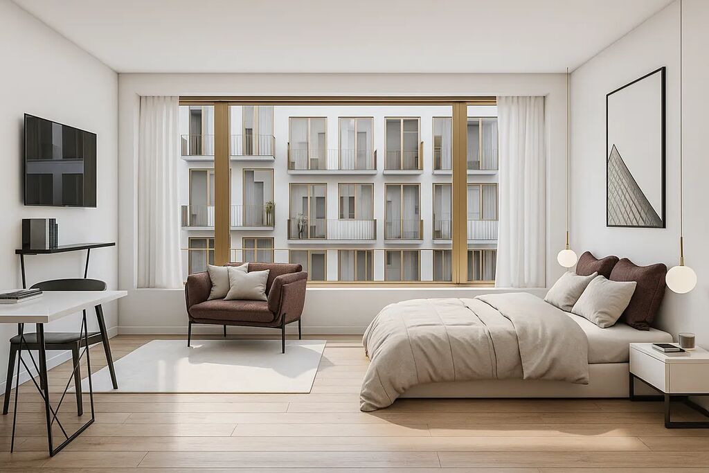 Útulný byt s velkým panoramatickým oknem o dispozici 1+kk se nachází v jihozápadním cípu budovy ve třetím nadzemním podlaží. V předsíni se nachází nika s přípravami pro napojení pračky, koupelna je vybavená umyvadlem, WC a prodlouženým sprchovým koutem. Ze zádveří byt pokračuje do hlavního obytného prostoru s přípravami pro napojení kuchyňské linky a prostorem pro stolování a obývací část. Velké okno místnosti se snížením parapetem je orientováno na západ. V obývací části je vyveden optický kabel pro připojení k vysokorychlostnímu internetu.