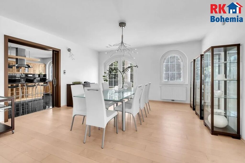 Bonusem je velmi citlivě upravená zahrada ze zavlažováním, se vzrostlými stromy a s travnatou plochou na heliport či tenisové kurty. Pozemek s vyhřívaným krytým bazénem a jezírkem velmi dobře doplňuje výjimečnost samotné stavby. Může sloužit pro rodinnou relaxaci a odpočinek a rovněž dokáže nabídnout potenciál v případě komerčního využití.