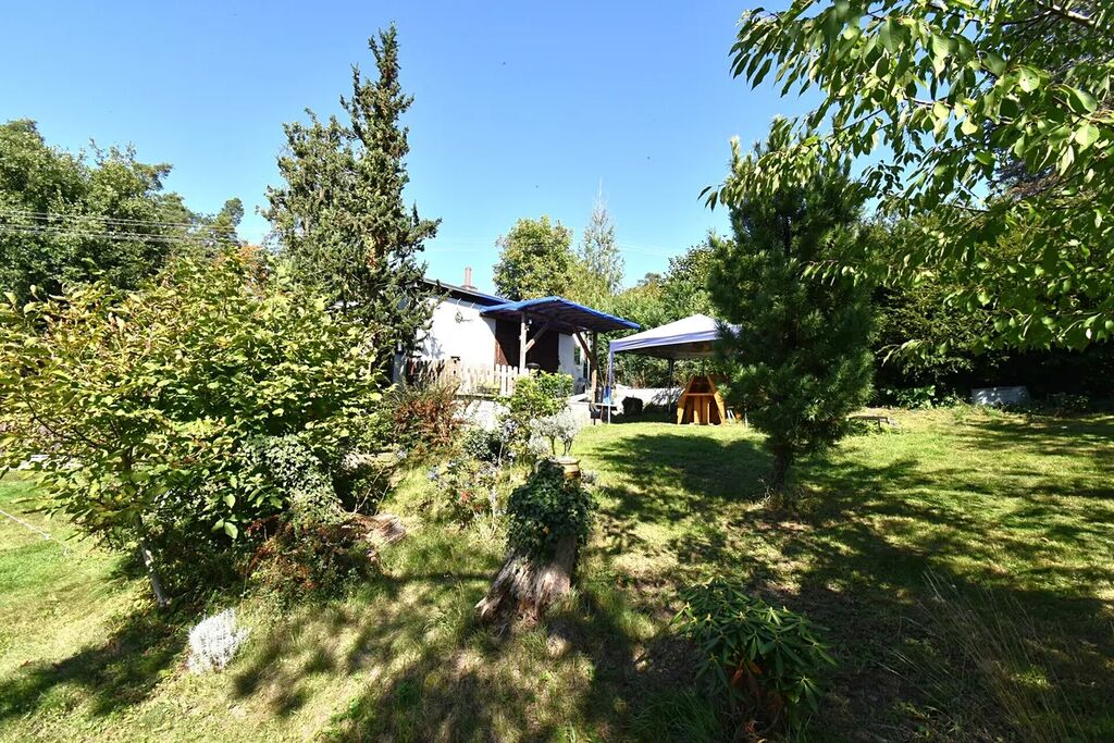 Součástí pozemku je suchý záchod a praktická kůlna na nářadí.