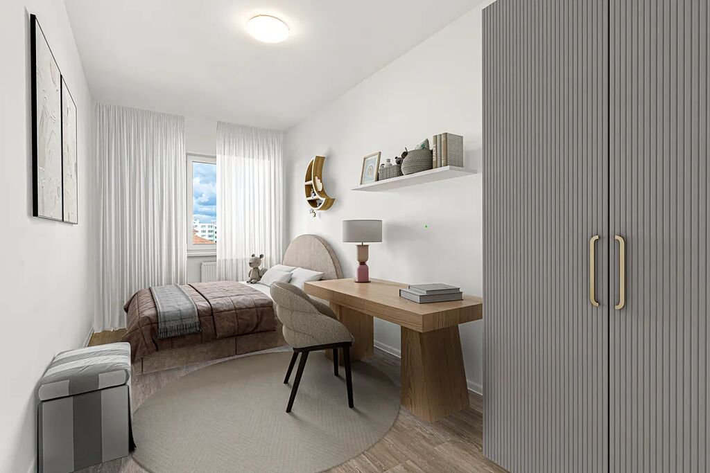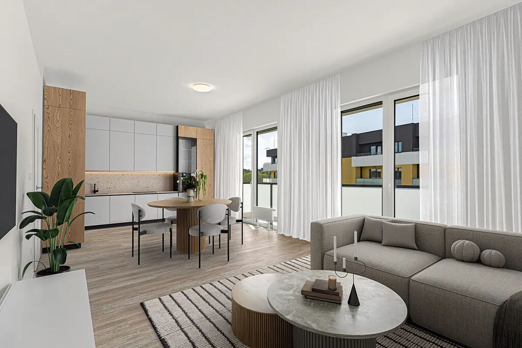 Okolí rezidence nabízí klidné prostředí s možností procházek, cyklostezek a volnočasových aktivit. Díky tomu je byt ideální jak pro rodiny s dětmi, tak pro páry hledající moderní startovací bydlení v širším centru města.