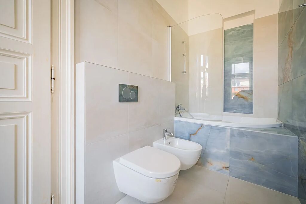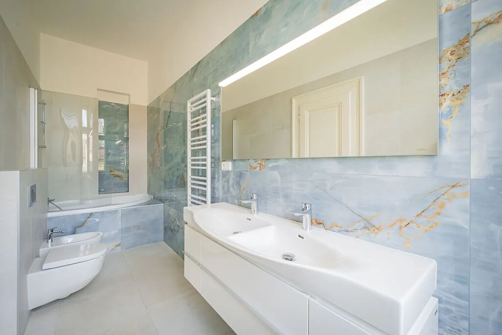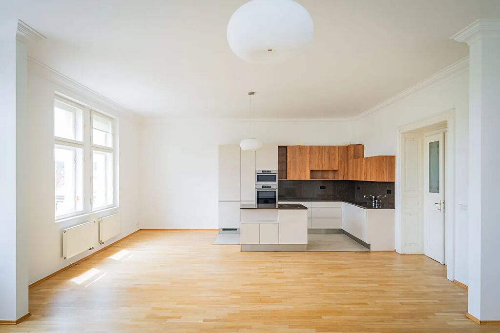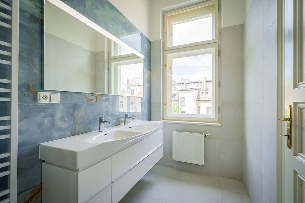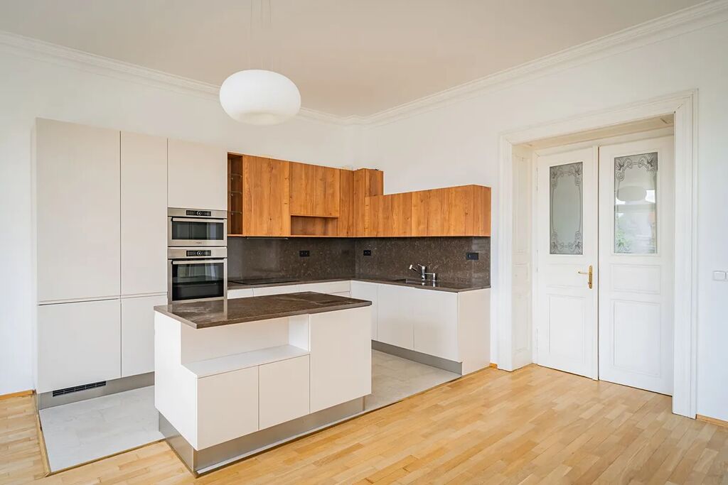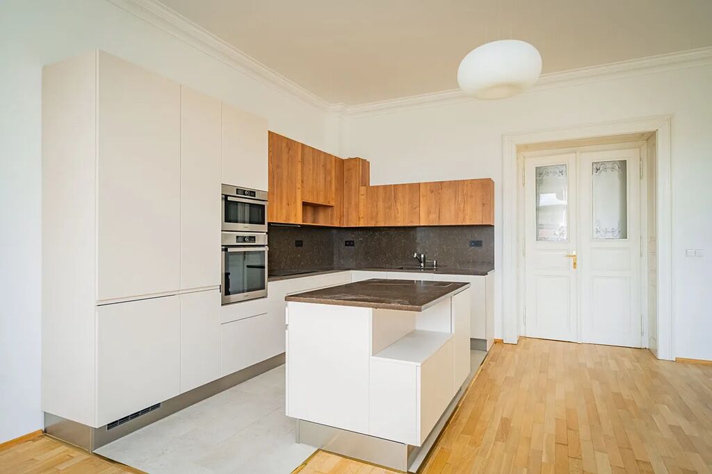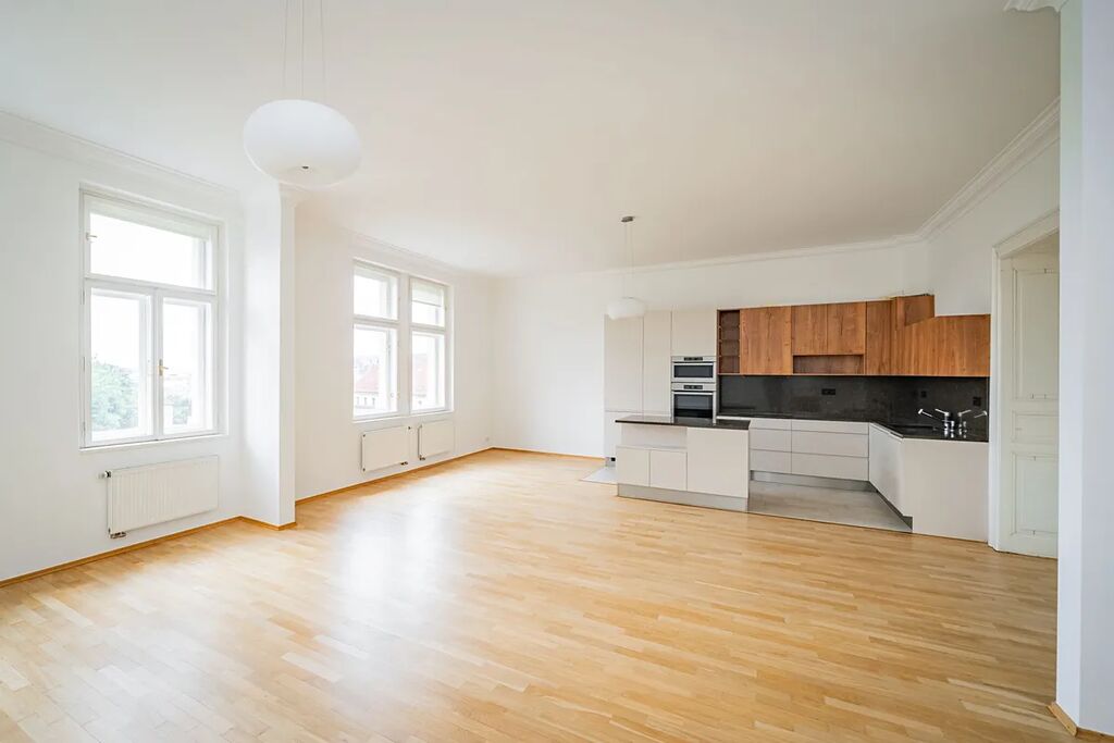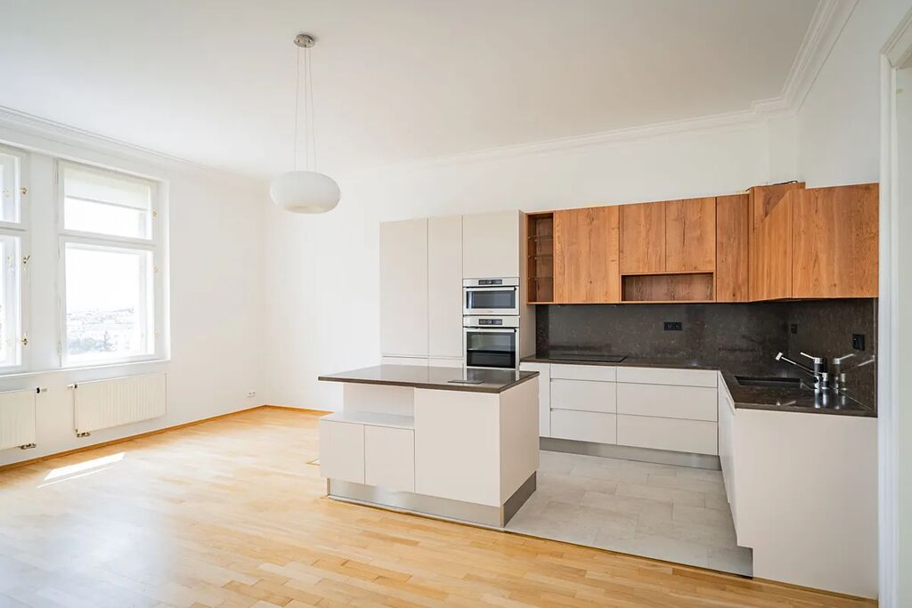 Zrekonstruovaný prostorný byt 4+kk (3 ložnice, 2 koupelny) s krbem, obytnou plochu 153 m2, je situovaný ve 4. patře zrekonstruovaného domu s výtahem, který se nachází v atraktivní lokalitě v blízkosti nábřeží Vltavy, na Novém Městě v Praze 2, ulice Na Moráni.