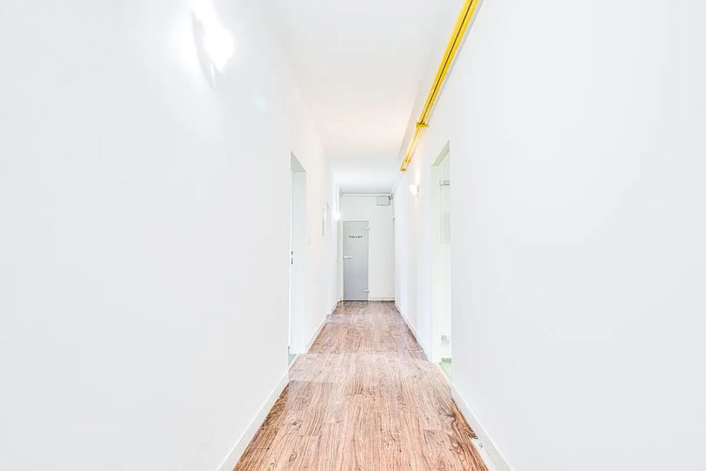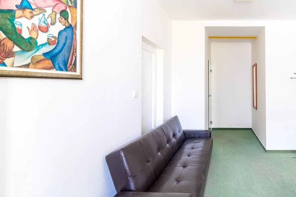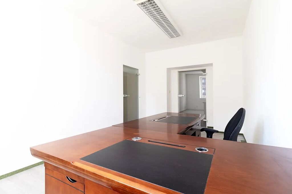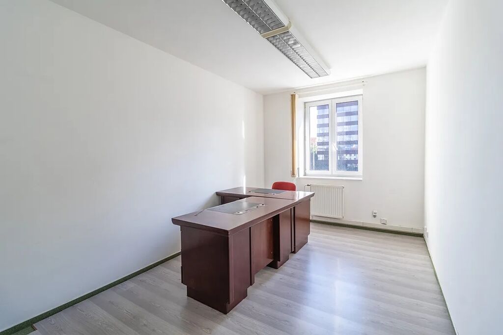 Nabízené kancelářské prostory (1. polovina, 124 m2) se skládají z 4 samostatných kanceláří, chodby, zasedací místnosti, sociálního zařízení a kuchyně.