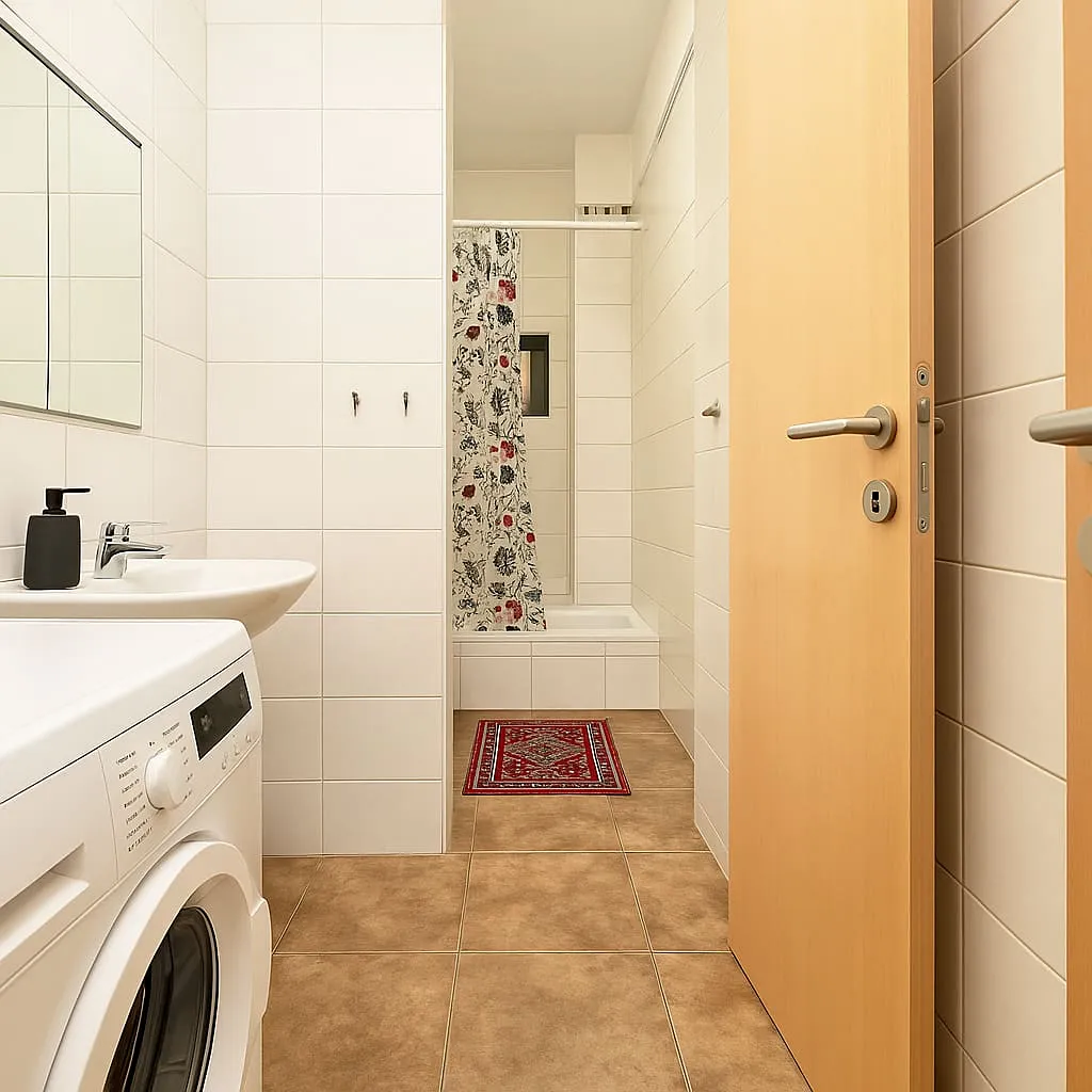 Byt se skládá z prostorného obývacího pokoje s moderní kuchyňskou linkou a jídelním koutem, samostatné ložnice, koupelny se sprchovým koutem a pračkou a předsíně s dostatkem úložného prostoru.