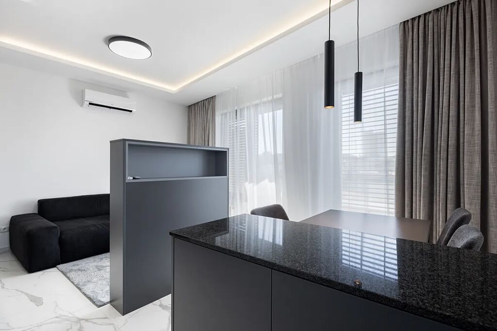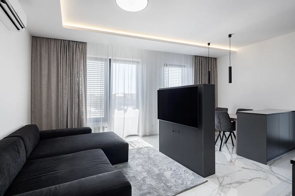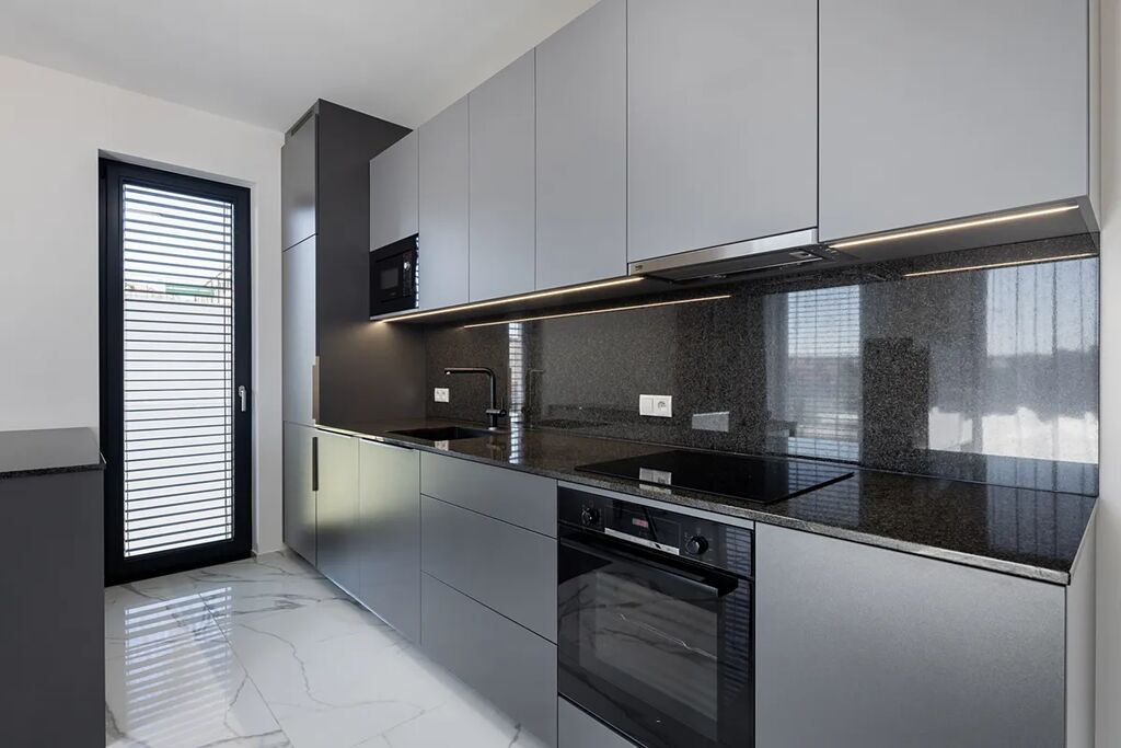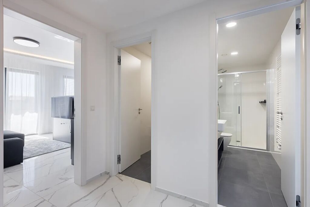 Byt vyniká moderním designem, množstvím úložného prostoru a prvotřídním vybavením. Byt situován v posledním patře nabízí maximální soukromí, výhledy a dostatek světla.