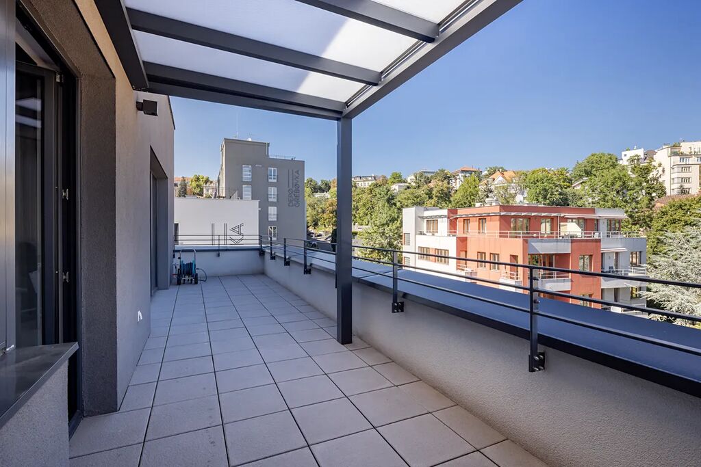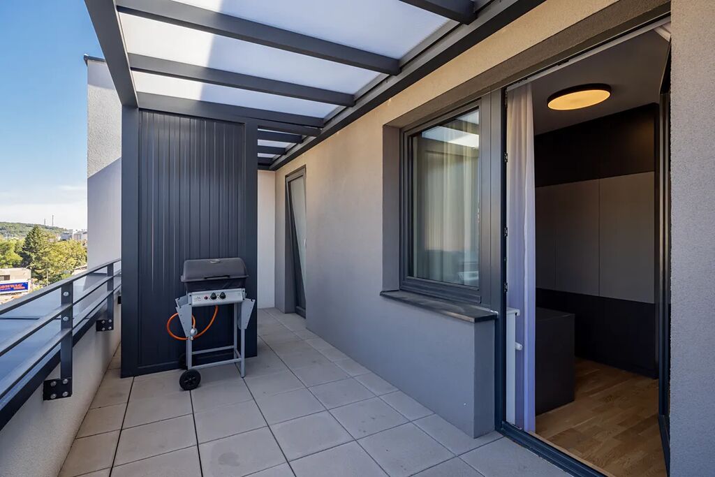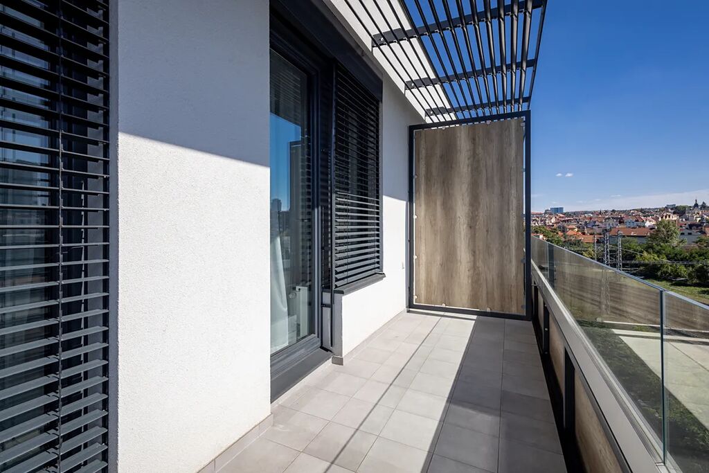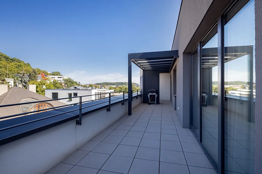 Přímý vstup na terasu z obou ložnic, výhled do klidné ulice a k parku Grébovka