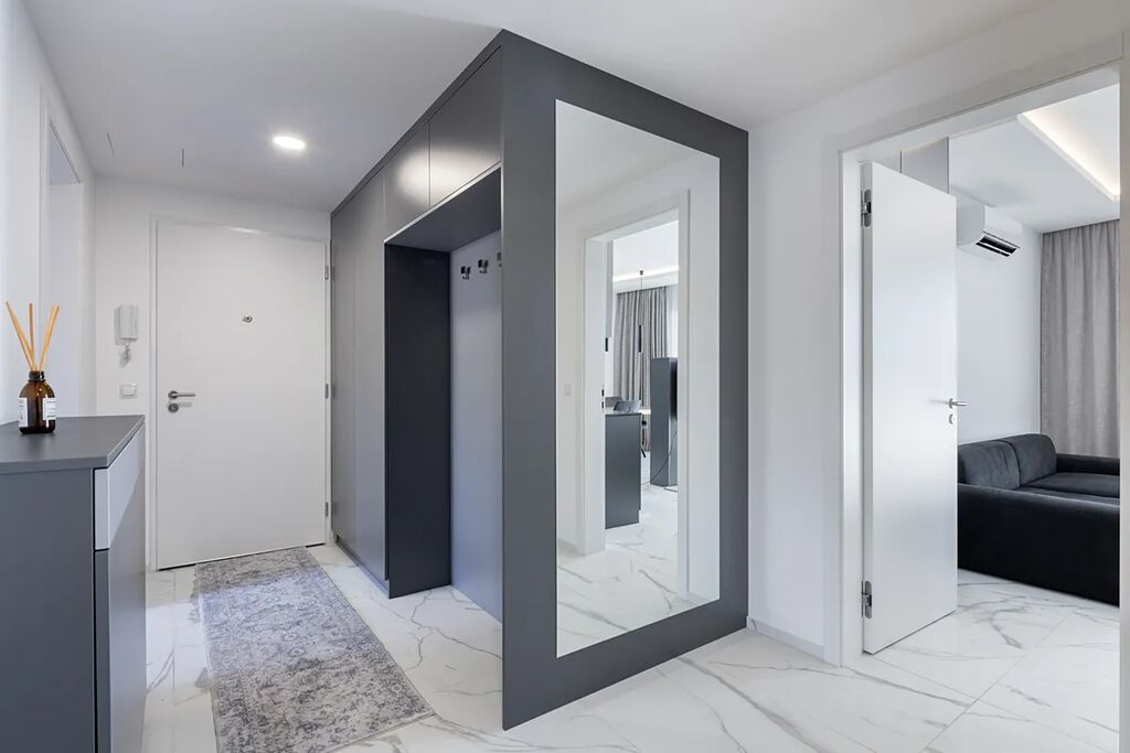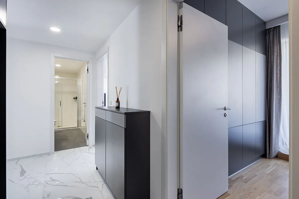 Vstupní chodba s vestavěnou šatní skříní a botníkem