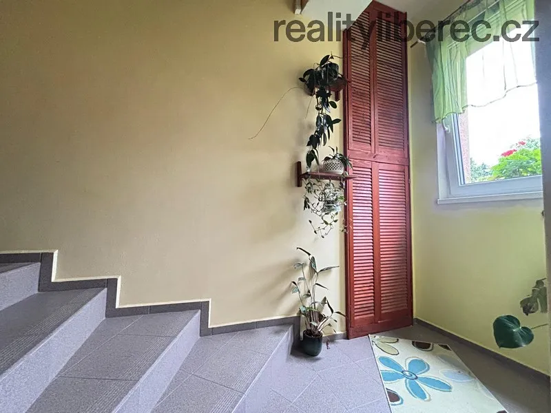 Byt je slunný s nádherným výhledem na Ještěd a zeleně. Bytová jednotka se skládá z kuchyně s moderní kuchyňskou linkou, velikého obývacího pokoje, ložnice, chodby, velmi malé koupelny se sprchovým koutem a WC. V obytných místnostech je laminátová plovoucí podlaha, v koupelně je dlažba. Okna jsou plastová. K bytu patří sklepní kóje a komora v mezipatře, ve které je přípojka k pračce.