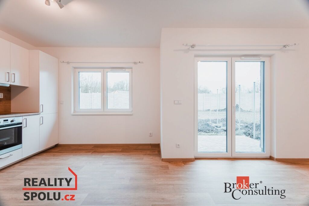 Dispozice bytu: chodba, komora, prostorná koupelna se sprchovým koutem a toaletou, kuchyň s kuchyňskou linkou a obývácím pokojem se vstupem na terasu a soukromou zahrádku, ložnice.